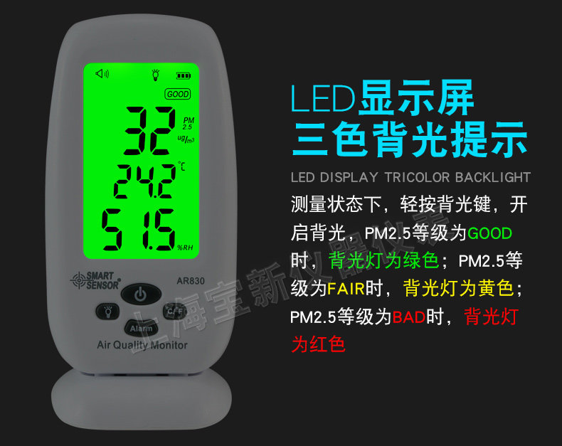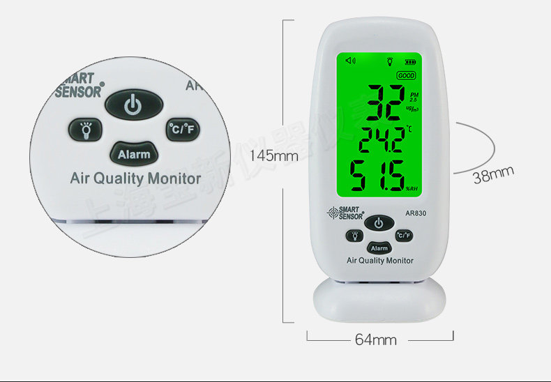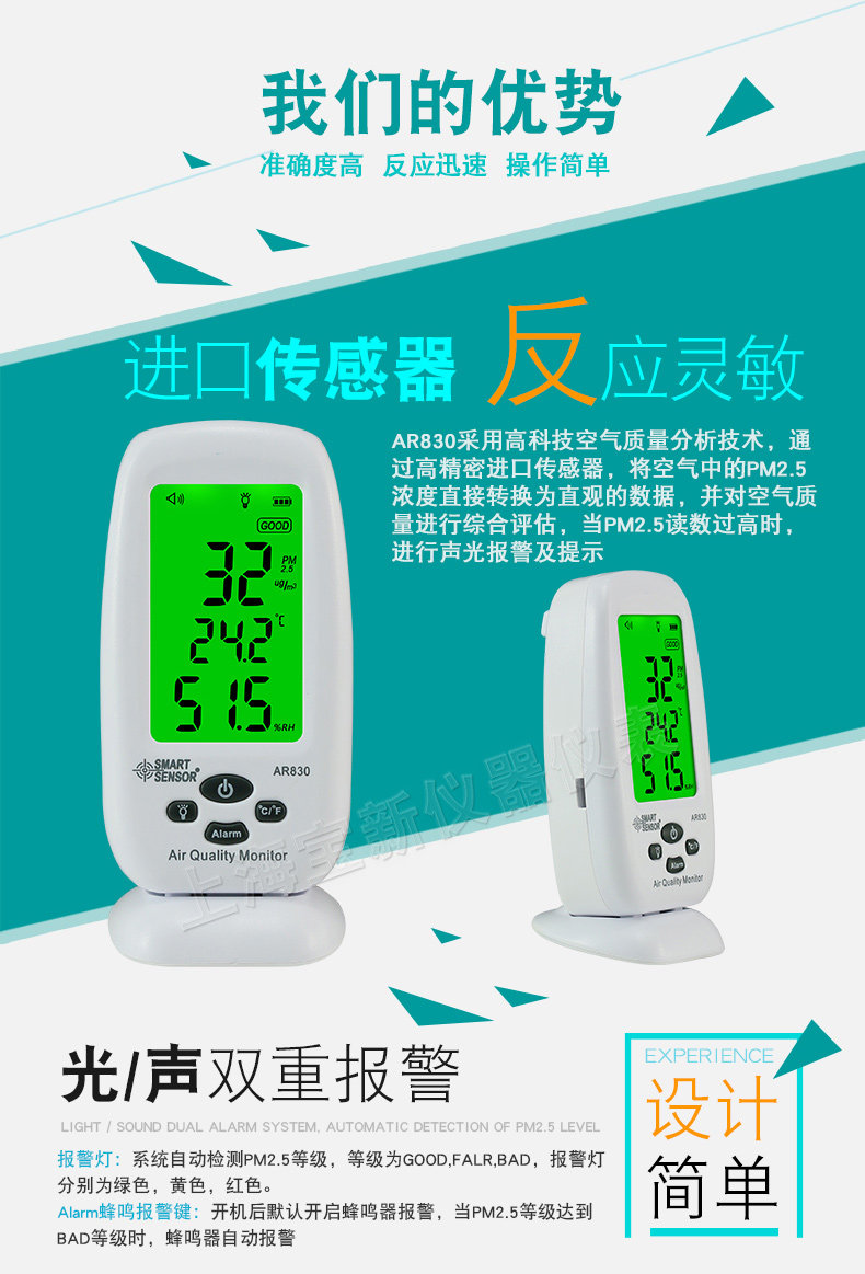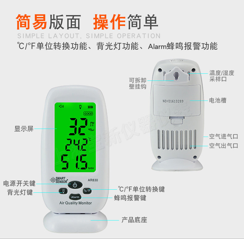 希玛AR830室内空气质量检测仪PM2.5浓度检测仪雾霾监测带温湿度
