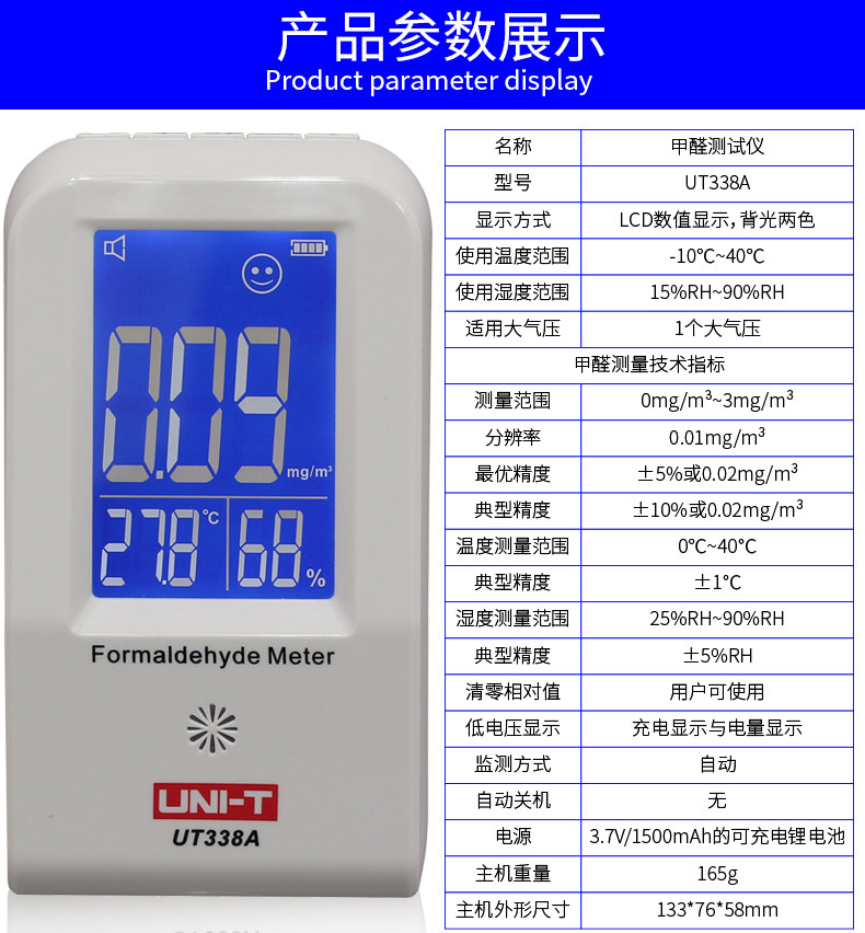 UNI-T优利德UT338A空气质量监测试仪 专业家用甲醛检测仪