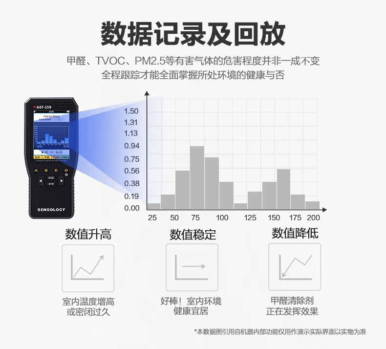 思乐智甲醛检测仪的传感器是电化学工作方式,里面有数片感应膜片,对温度变化很敏感,吹气,吹烟会产生局部温度不一样,直接产生压电反应,导致数值上升。停止吹气后会很快回到正常状态。 测量时应避免:酒,饮料,烟,酯类(家中的食用醋);醇类(酒);有机酸(苹果酸)等。