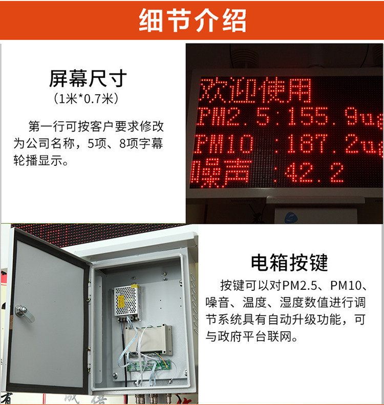 • 颜色分类:两项升级款/pm2.5+pm10 两项联网升级款/pm2.5+pm10 三项升级款/pm2.5+pm10+噪声 三项联网升级款/pm2.5+pm10+噪声 五项升级款/三项+温度+湿度 五项联网升级款/三项+温度+湿度 八项升级款/五项+风速+风向+风力 八项升级款/五项+风速风向+风力 扬尘检测仪(三项) 两项普通款/pm2.5+pm10 两项联网普通款/pm2.5+pm10 三项普通款/pm2.5+pm10+噪声 三项联网普通款/pm2.5+pm10+噪声 五项普通款/三项+温度+湿度 五项联网普通款/三项+温度+湿度 八项普通款/五项+风速+风向+风力 八项普通款/五项+风速风向+风力