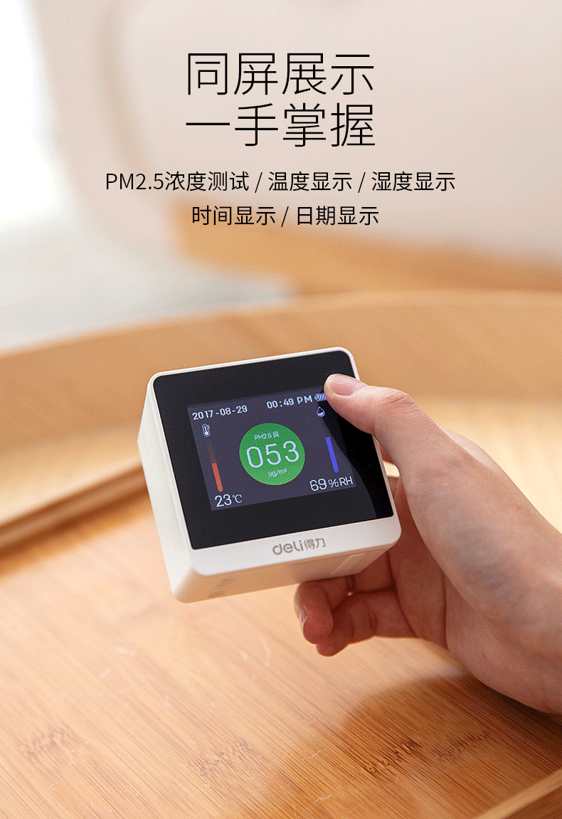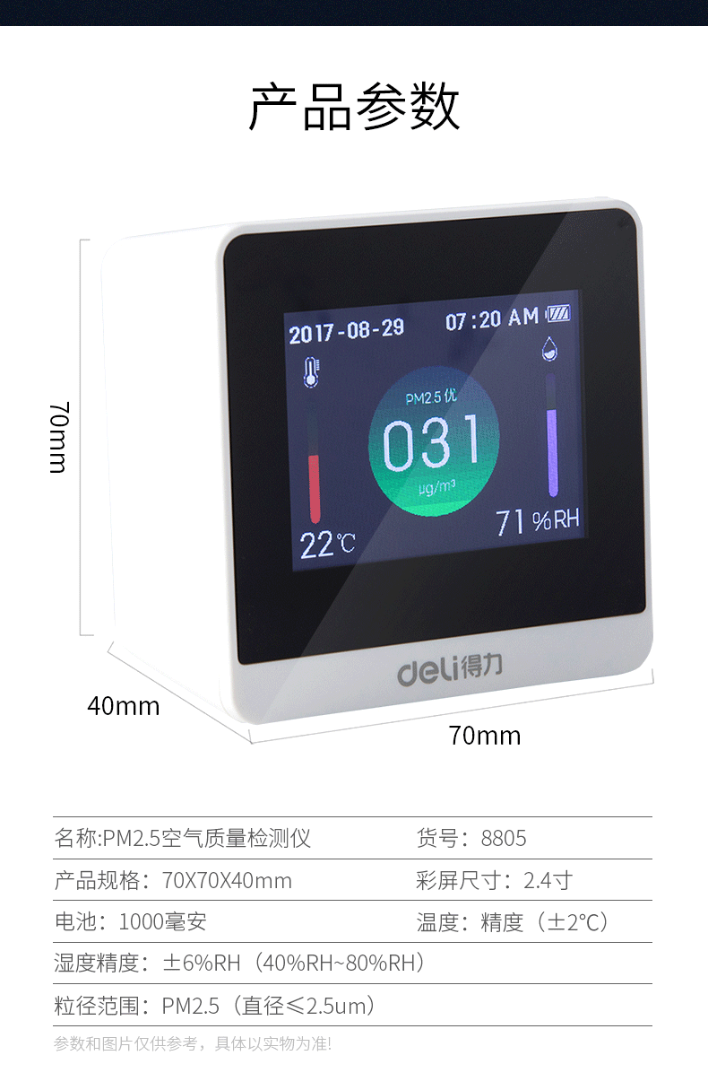 很灵敏,放到小米空气净化器上面,pm2.5数值迅速下降,广州这段时间湿度这么大,难怪闷热难受~可以出升级版本测甲醛的么~加油研发呀~可以直插usb工作,也可以充电后移动,续航4小时没问题