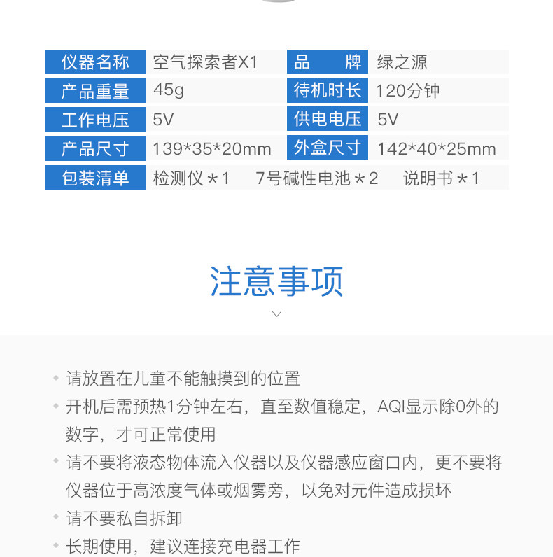 绿之源甲醛检测仪器 空气探索者X1室内家用便携空气质量专业试纸