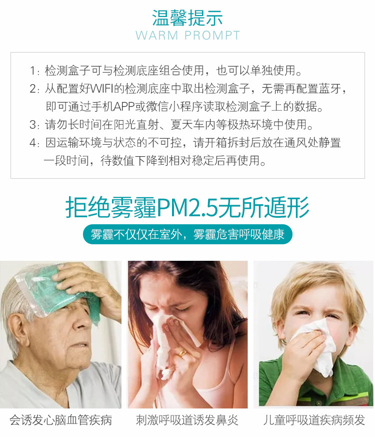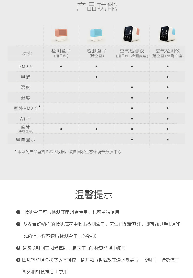 • 颜色分类:检测仪套装(晴空蓝+检查底盒)检测仪套装(旭日红+检查底盒)检测底座PM2.5+甲醛检测盒子(晴空蓝)PM2.5检测盒子(旭日红)