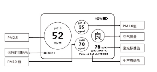 通过短按本机开机键,可切换显示pm1.0 pm2.5 pm10颗粒物的浓度或数量,详情见描述图4、5。
