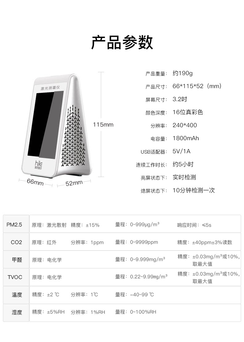 海克智动B6A便携式家用甲醛检测仪PM2.5检测CO2 TVOC专业空气检测