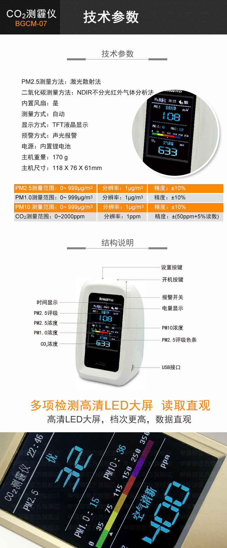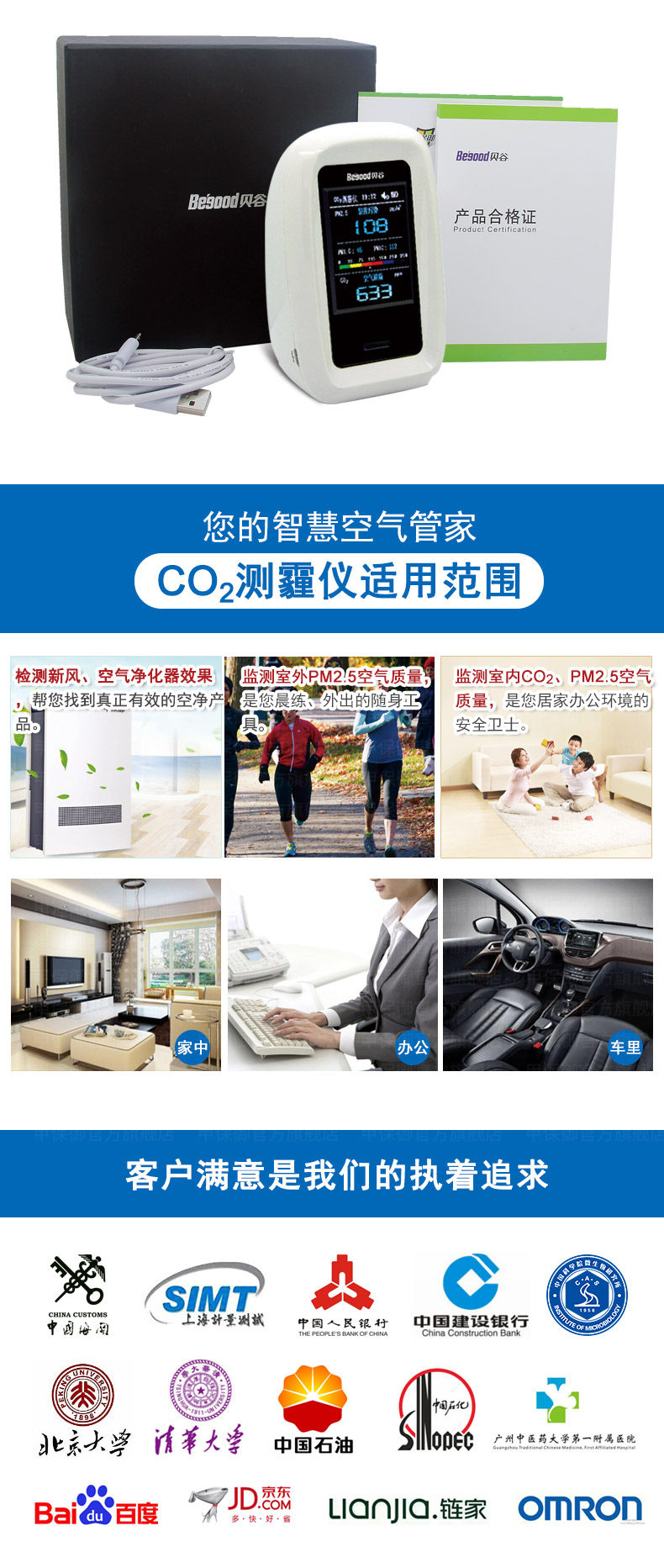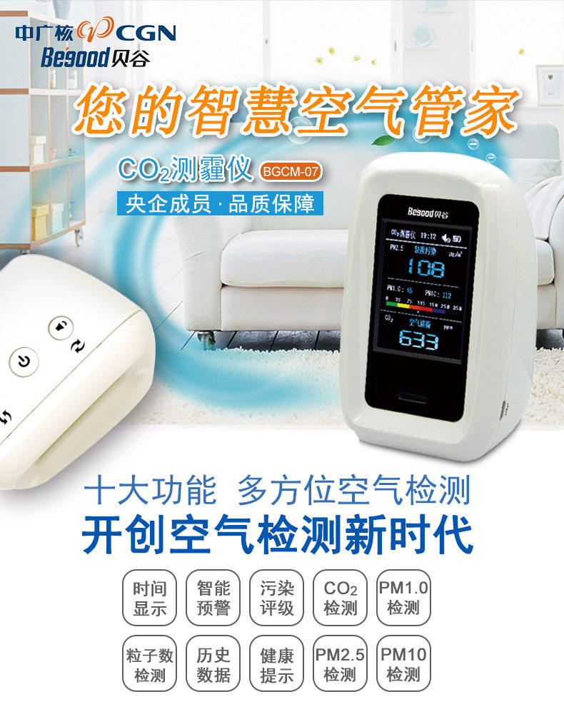 [智慧生活品牌家居店气体检测仪]贝谷 二氧化碳检测仪CO2 pm2.月销量3件仅售699元