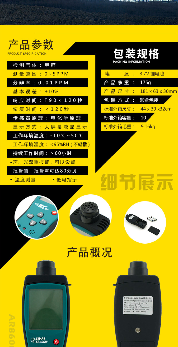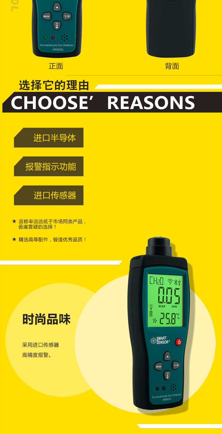 [杭州华制电子商行气体检测仪]希玛AR8600 手持式电化学家用室月销量3件仅售1590元