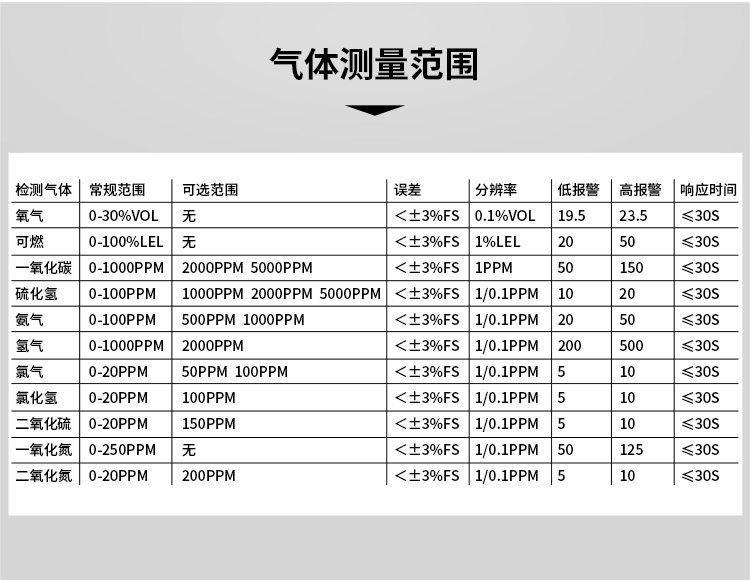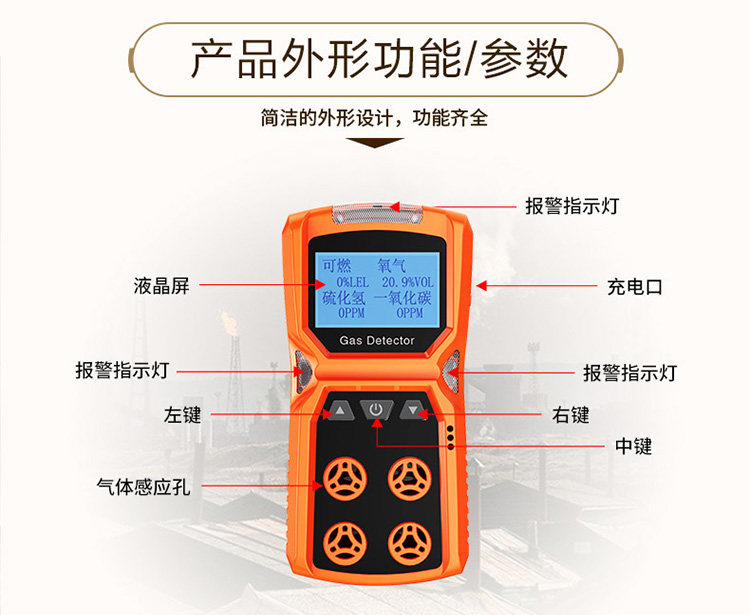 • 颜色分类:四合一可燃氧气一氧化碳硫化氢