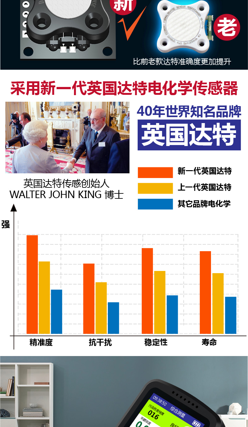 很灵敏,用了几天才评。刚装修完甲醛指标在0.08,0.09左右。今天电视墙的部分返工,墙面又处理了一下指标一下上到0.19。