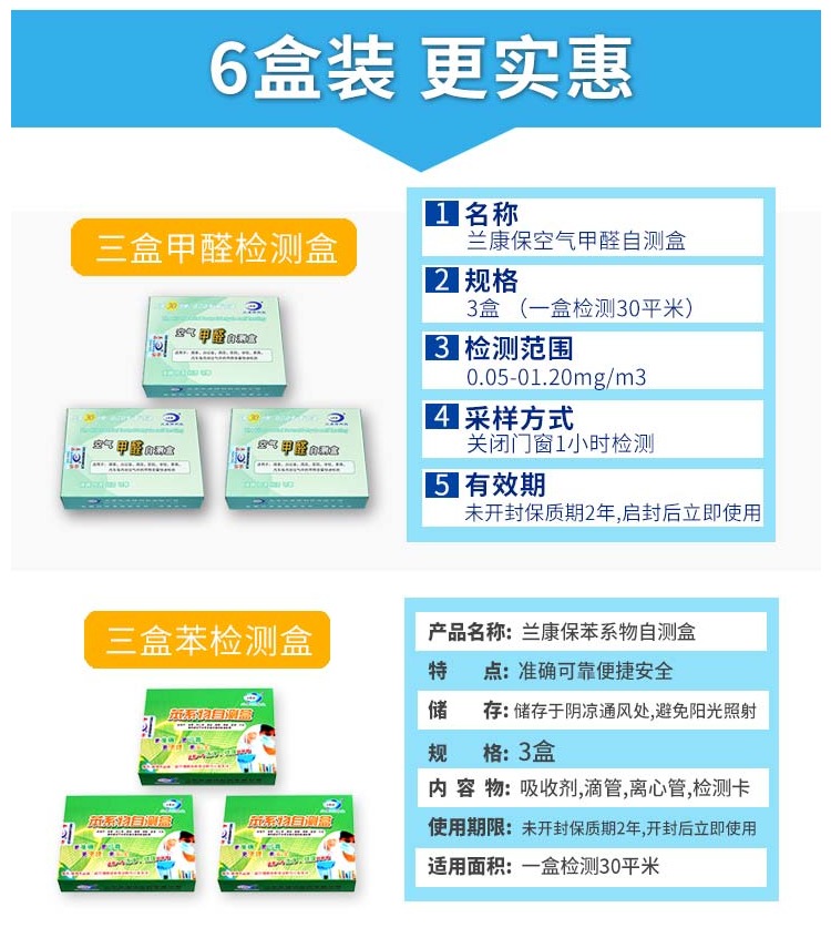 3盒甲醛检测盒+3盒苯检测盒测试盒试纸试剂空气自测盒甲醛检测仪