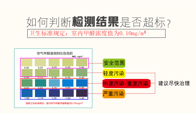 刚达标准值 不知道准不准好用,使用方便,服务态度特别好,客服特别有耐心,好评!!!测了家里几个地方,颜色都一样,又测了车里,还是那个颜色 。。。东西收到了,总的来说还是挺好的??房间和客厅测的颜色一样。都在0.15左右。检测出来还行,就是不知道准确性卖家协助连线对应标准,比较用心,好使,很快方便操作看着麻烦,不是很难,测出来的效果和比对卡对比了下,没有超标,不知道准不准这个,价格挺实惠的A7ykc4