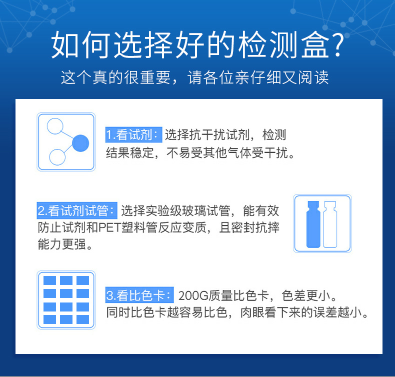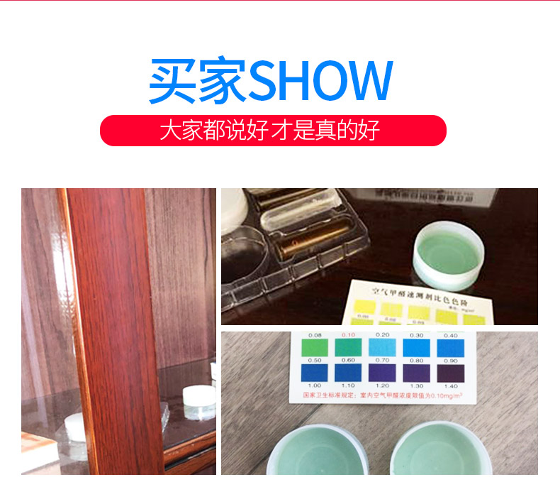 很好,测的很准,说明书说的也很详细,看完就会用了,放了一晚上,没有怎么变色,说明家里的味道不是甲醛,而是我家墙纸受潮了有味道,现在才知道哈哈哈,过了几天我们家厕所新装了洗手台,很大一股味儿,正好有很多盒,就测了一下,果然甲醛很浓郁!放了一晚上绿的发蓝!可以说很实用了,总比买一台机器测一下,划得来得多。不错,好评好评。好评好评,好评好评好评。好评好评,好评好评。