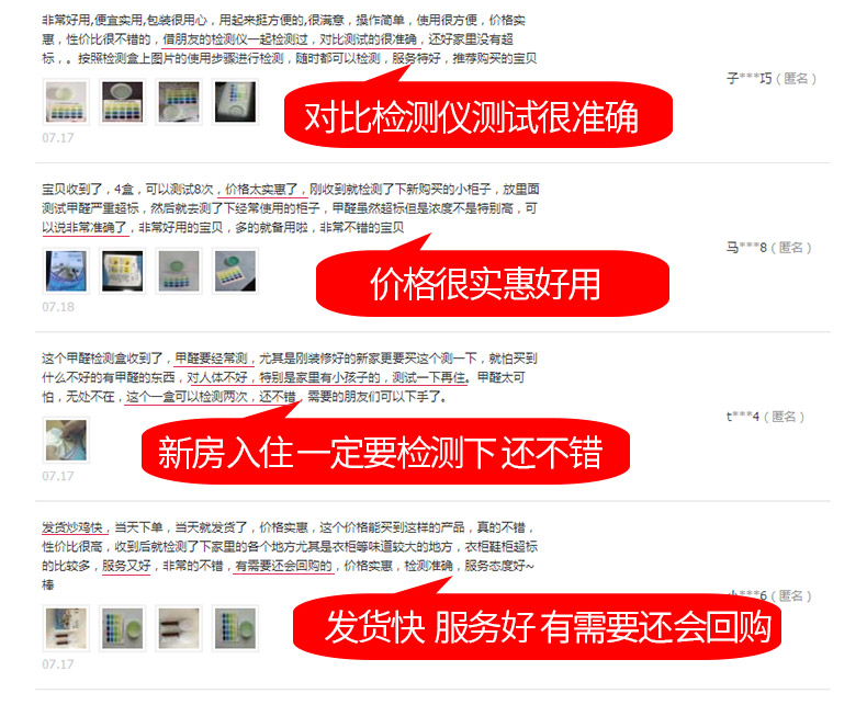 之前一直都没有重视过甲醛,但是最近逛帖子看了很多关于甲醛引发的一些悲剧,甲醛还是经常检测比较好,毕竟关乎到健康,而且价格不贵,检测也挺快的,我自己对比了下,这款宝贝不错,很准确,推荐