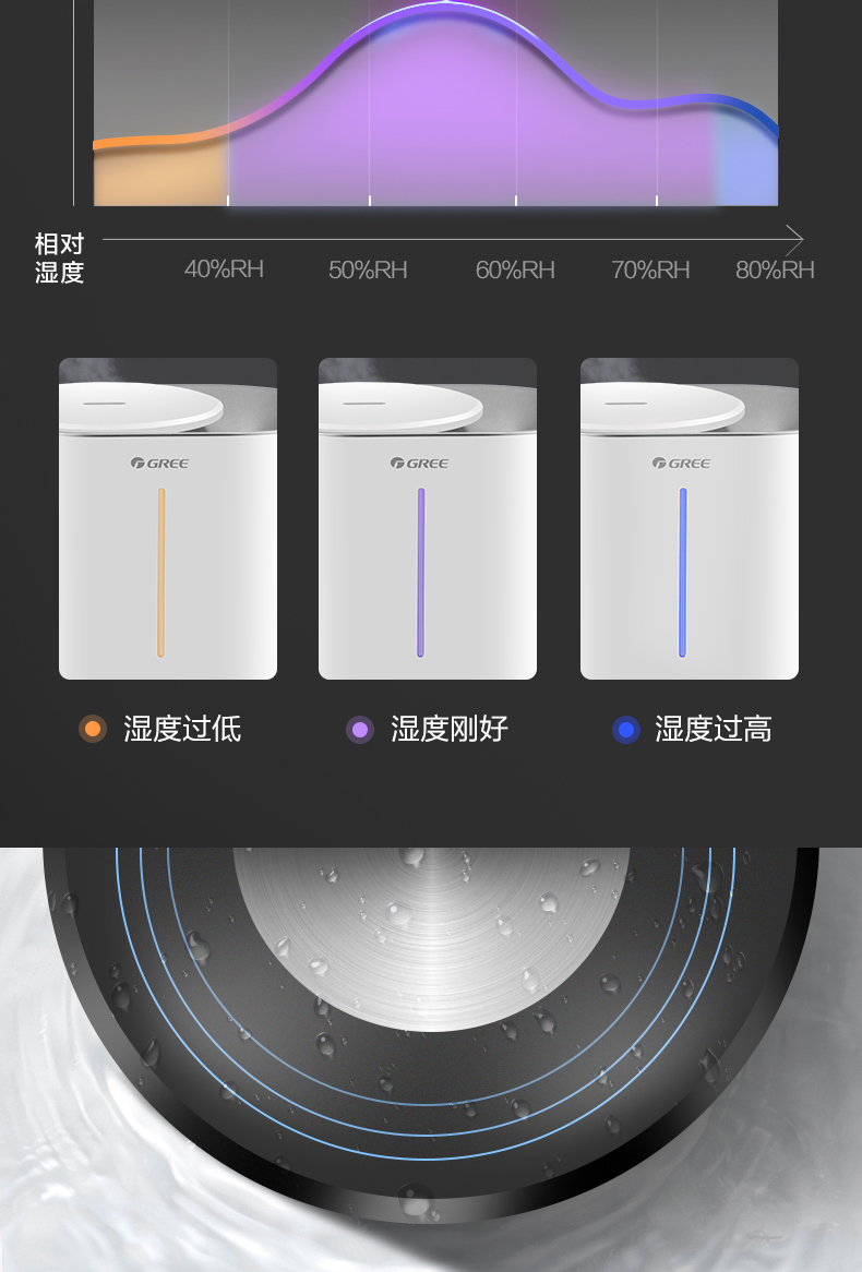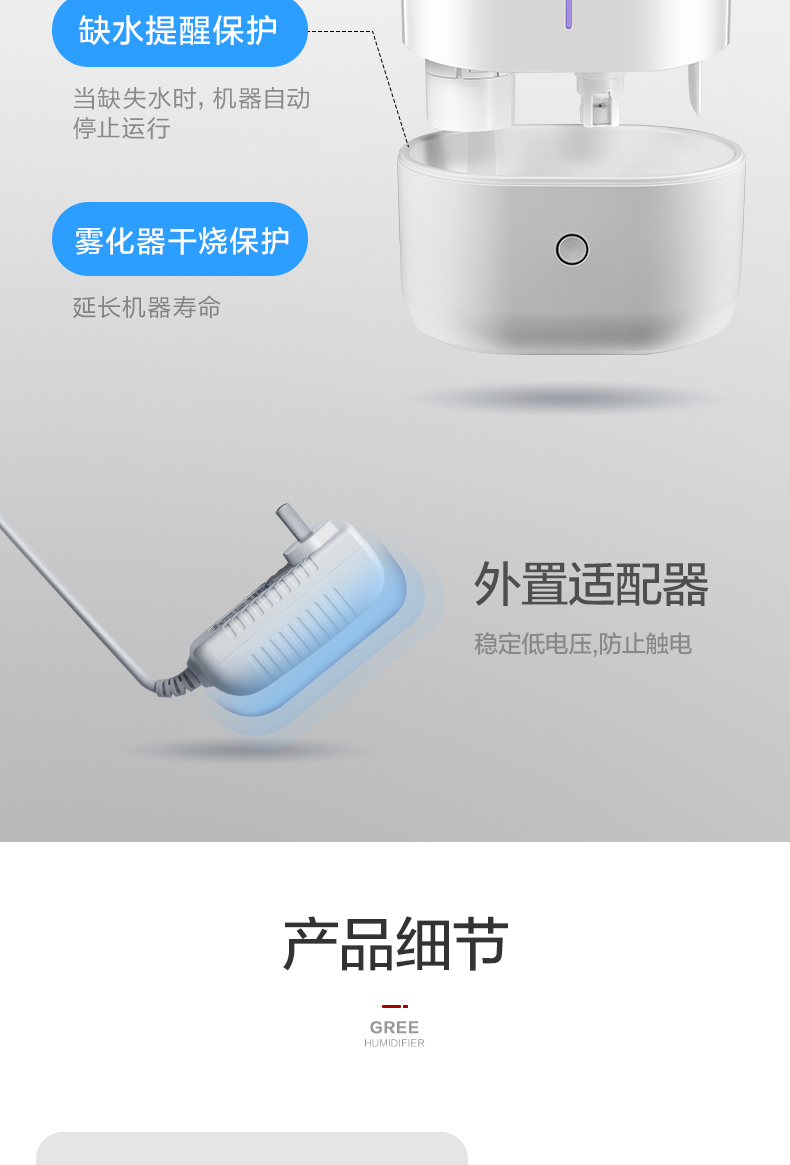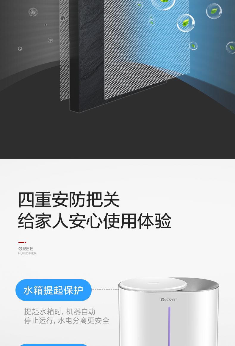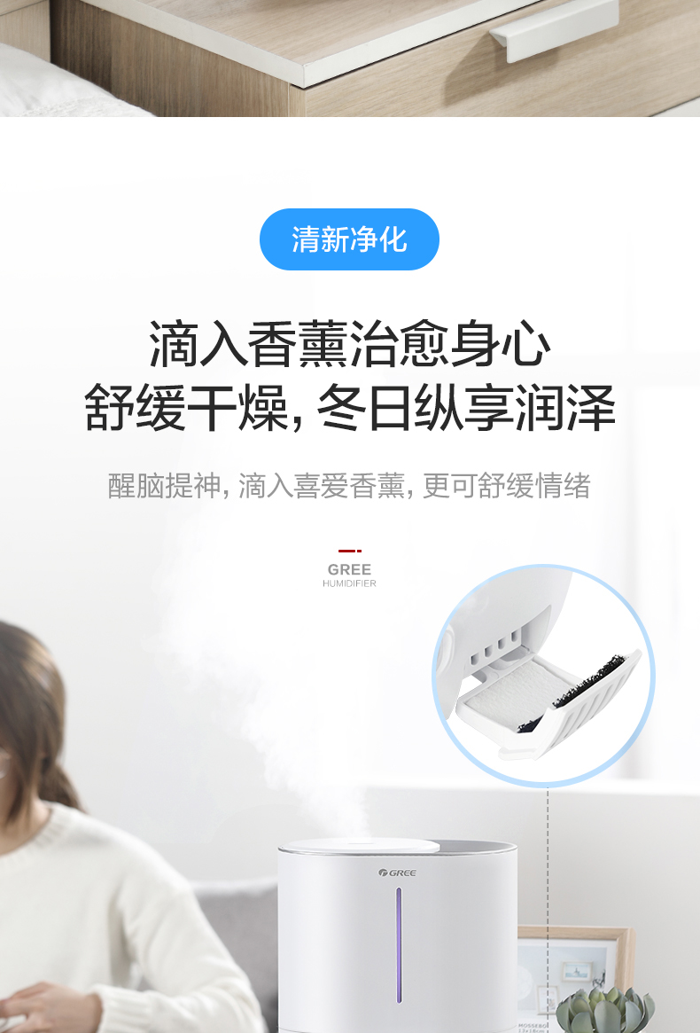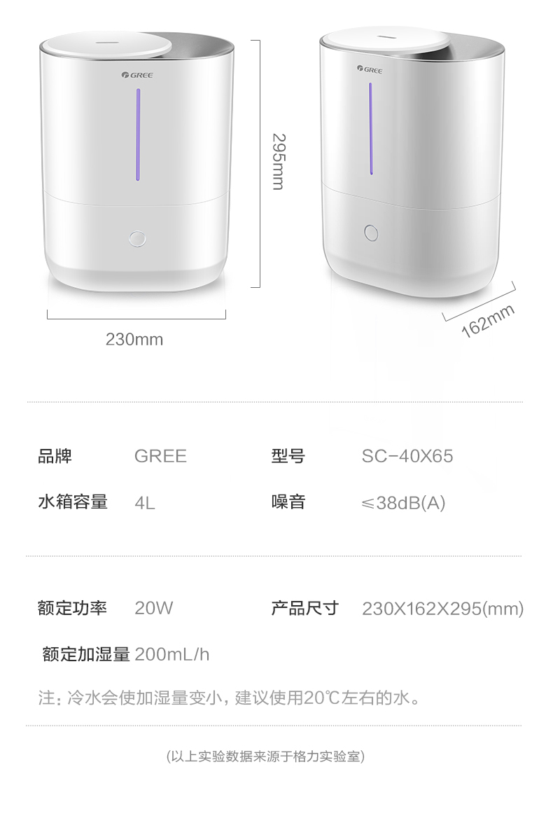 格力的忠实粉丝,这次买加湿器看到格力这款上加水的立马就下单了,上加水的真是方便多了,而且觉得外形也很好看啊,试用了一下声音真的很小,水雾也很细,不会弄湿地面,不愧是格力的产品