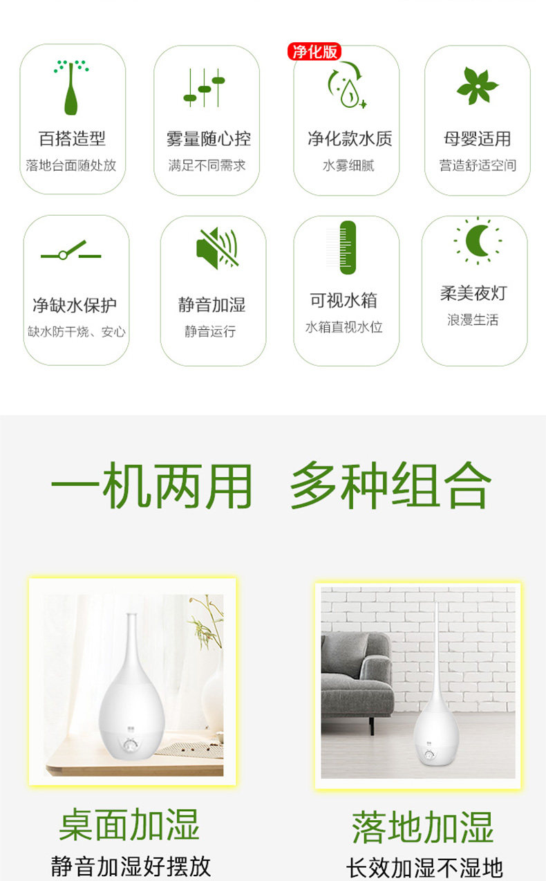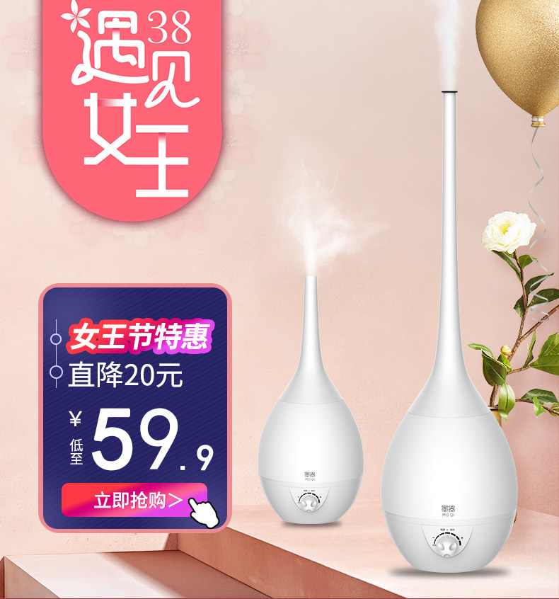(82)[伟盛电器商城加湿器]空气加湿器家用静音卧室除螨杀菌大雾量月销量99件仅售288元