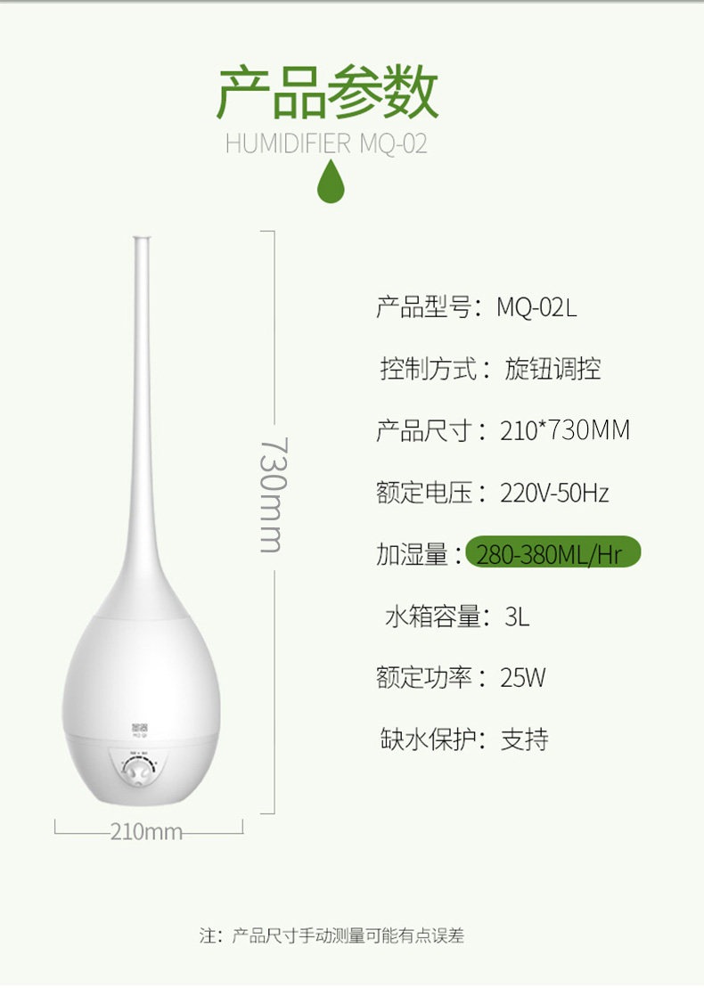 价格便宜 质量不错 喜欢这种加高的 雾量可调节 还有彩灯 之前家里湿度是38 用了以后是45 还是很有用的 很满意