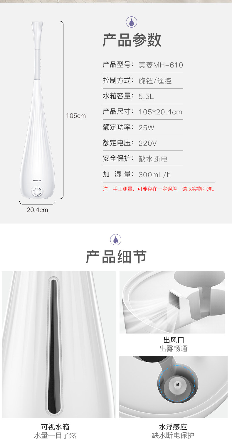 我已经第三次购买了,每个房子都放一个。美菱雾化器真的非常好,冬天24开着,从来没出过问题。而且这家店售后服务真的太好了。 最早买容声的没用几天,半夜就不出雾就漏水,木地板都泡变形了。