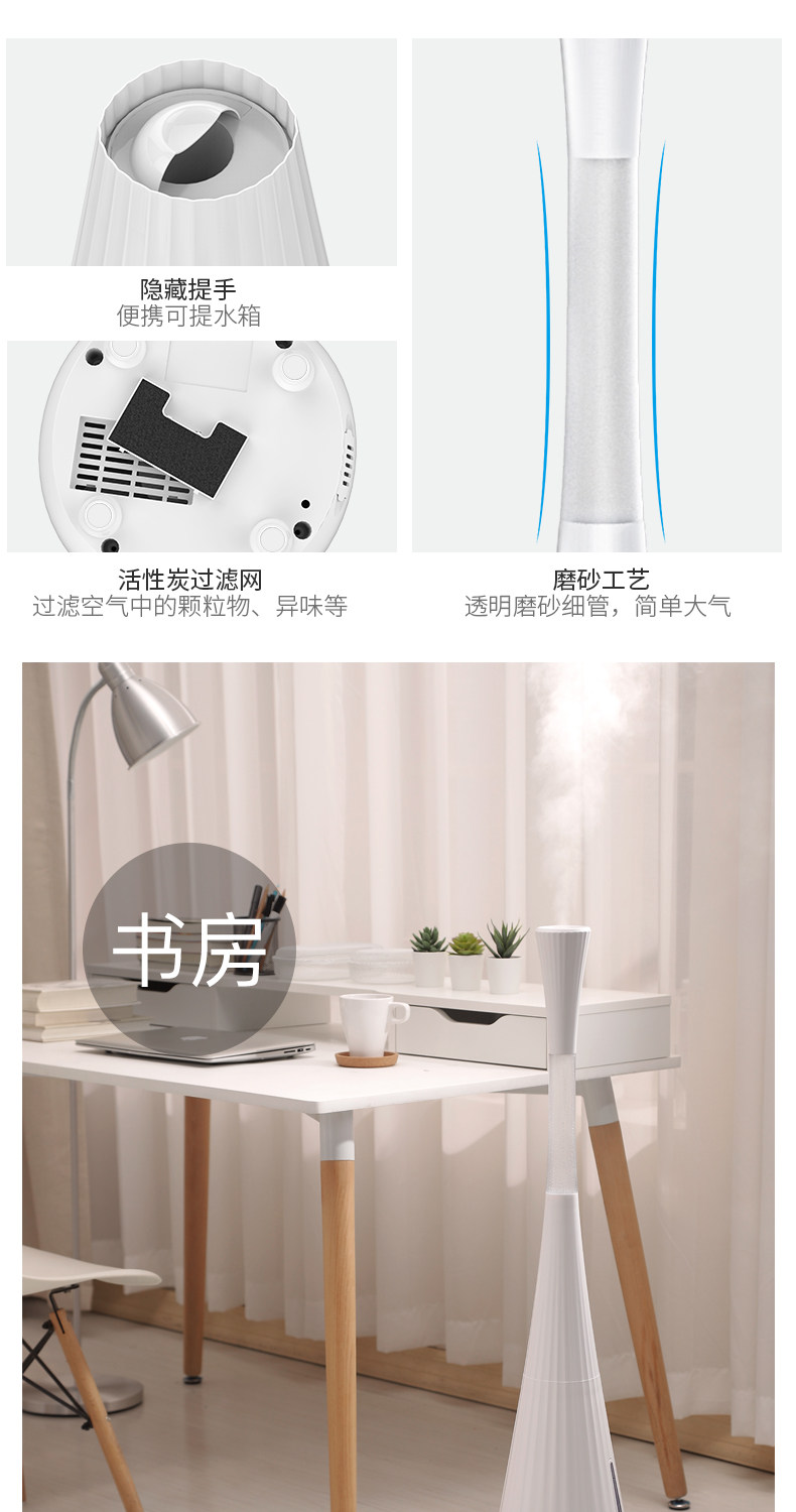 特别喜欢这个加湿器,每次能加很多水,用好几天,而且是朝上的,造型我也很喜欢