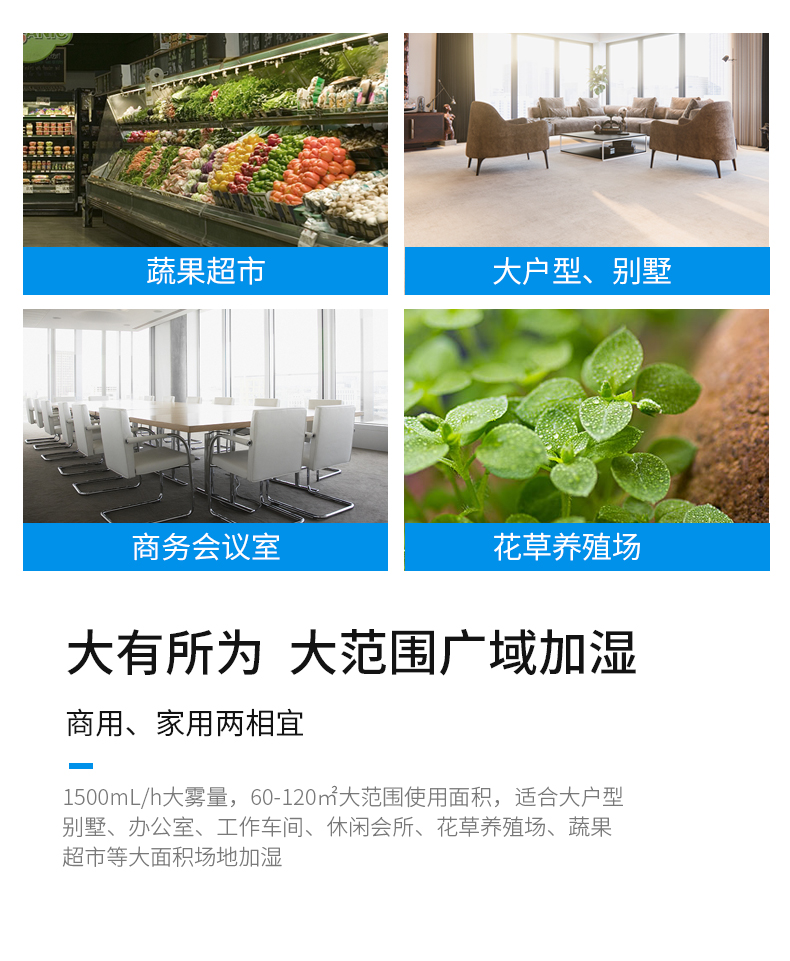 130平家庭使用 最大雾量 一个小时湿度提高百分之二十 声音可接受 装水方便