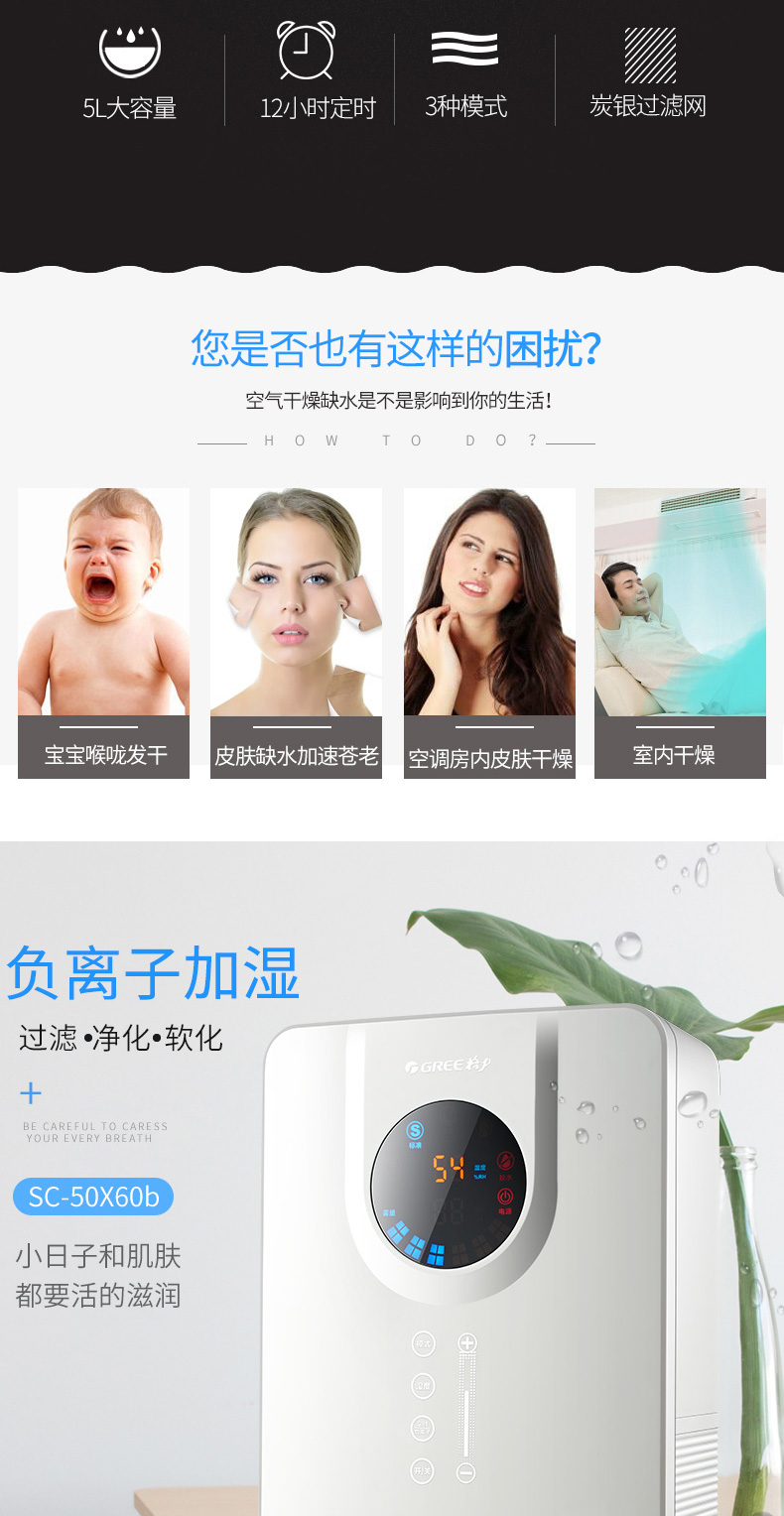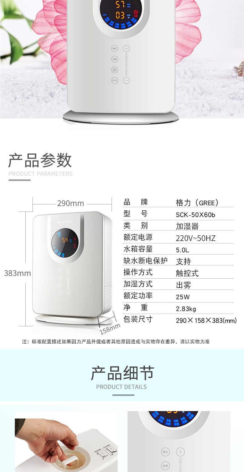 (74)[gree格力官方旗舰店加湿器]Gree/格力 SCK-50X60b月销量99件仅售429元
