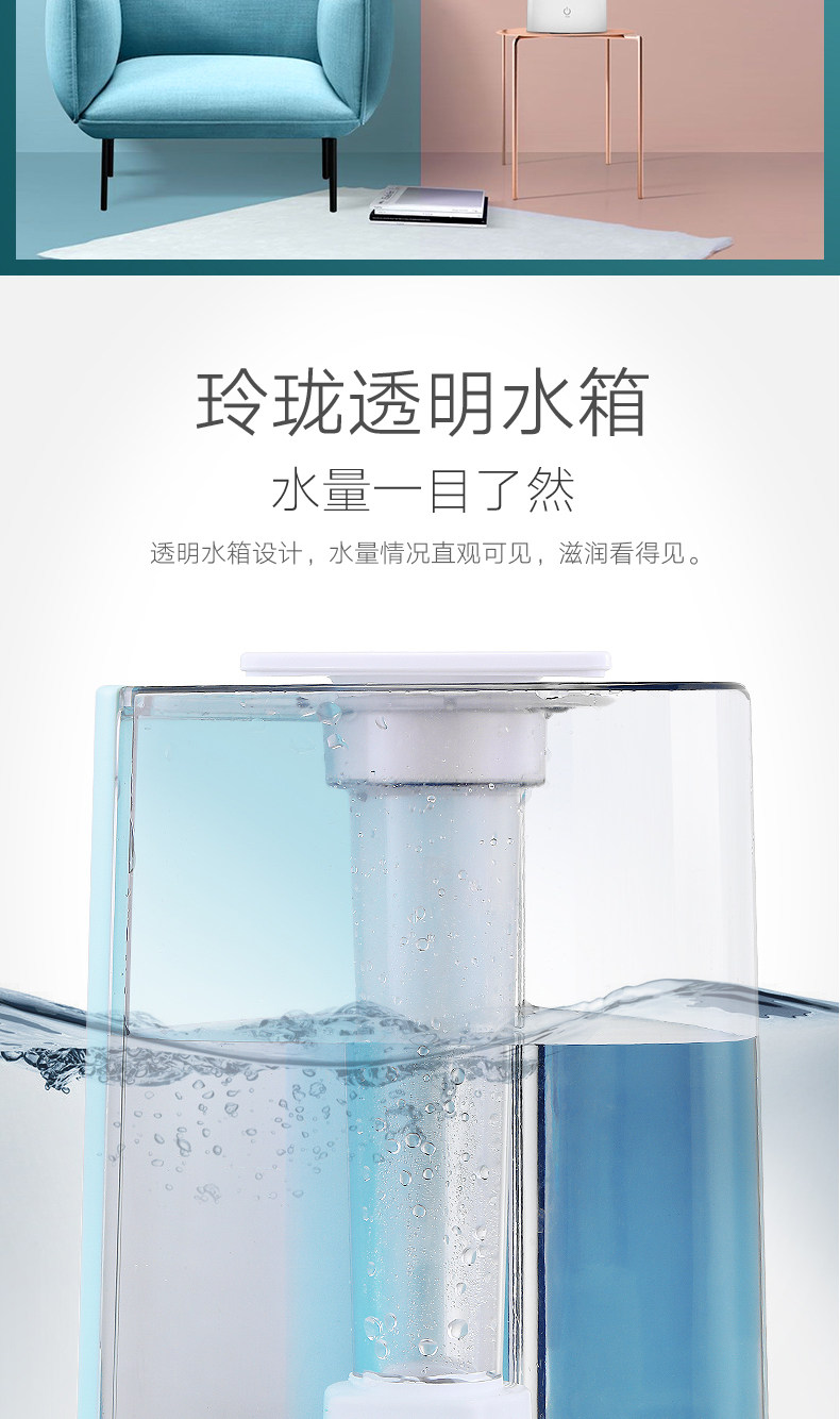 加湿器款式还不错,噪音也小,昨晚放在卧室,早上起床口鼻明显没那么干了,这次购物很满意!