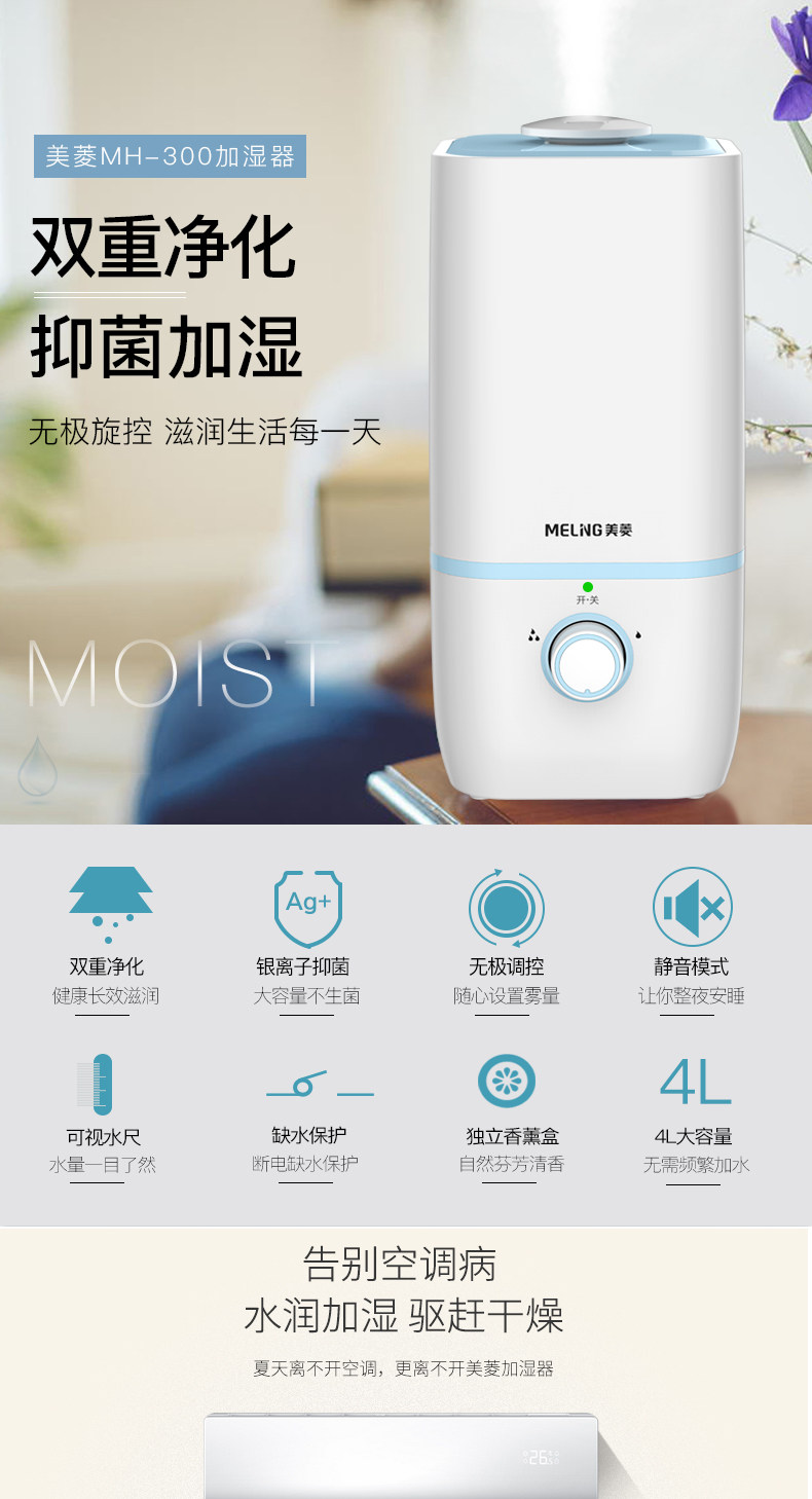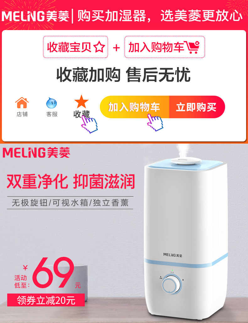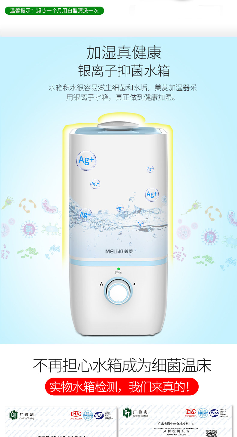 (82)[伟盛电器商城加湿器]空气加湿器家用静音卧室除螨杀菌大雾量月销量99件仅售288元