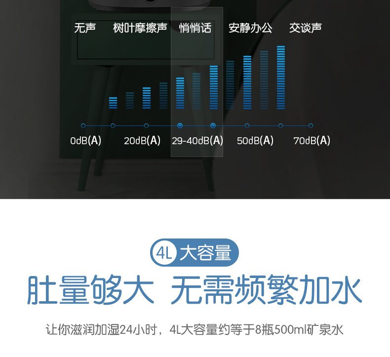 上加水很方便,加水量也很大,够用一夜,出雾量也很大,很小的水声,能接受,加的净化水,空气不那么干燥了