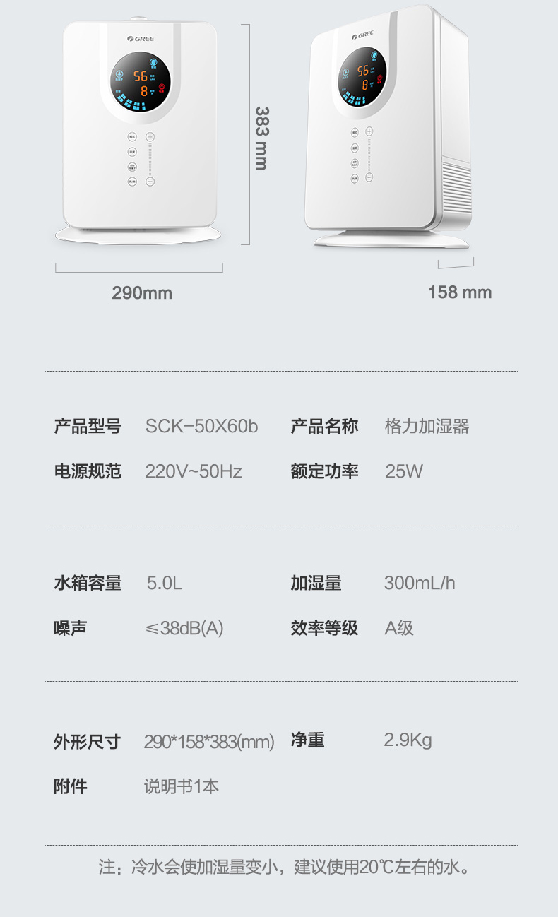 (74)[gree格力官方旗舰店加湿器]Gree/格力 SCK-50X60b月销量99件仅售429元