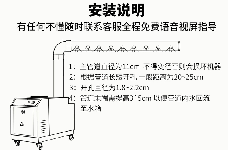 东西到是可以用,但是质量不敢恭维,出雾口说公称110,结果买的110的水管插不进,我再一看,出雾口用的最多1mm的钢带卷起来点焊的,并且圆度公差很大。而且这个售后服务安装指导真的是不到位。因为我在商场开店,所以需要下班后再安装,给他们售后打微信视频不接,只同意语音,可是也讲不清楚,这哪有什么服务?当初买之前口口声声可以视频指导安装。讲了几句就不问他们了,算了,我认栽,自己摸索,实在不行花钱请别人给我装。不建议大家买!小厂小制作!