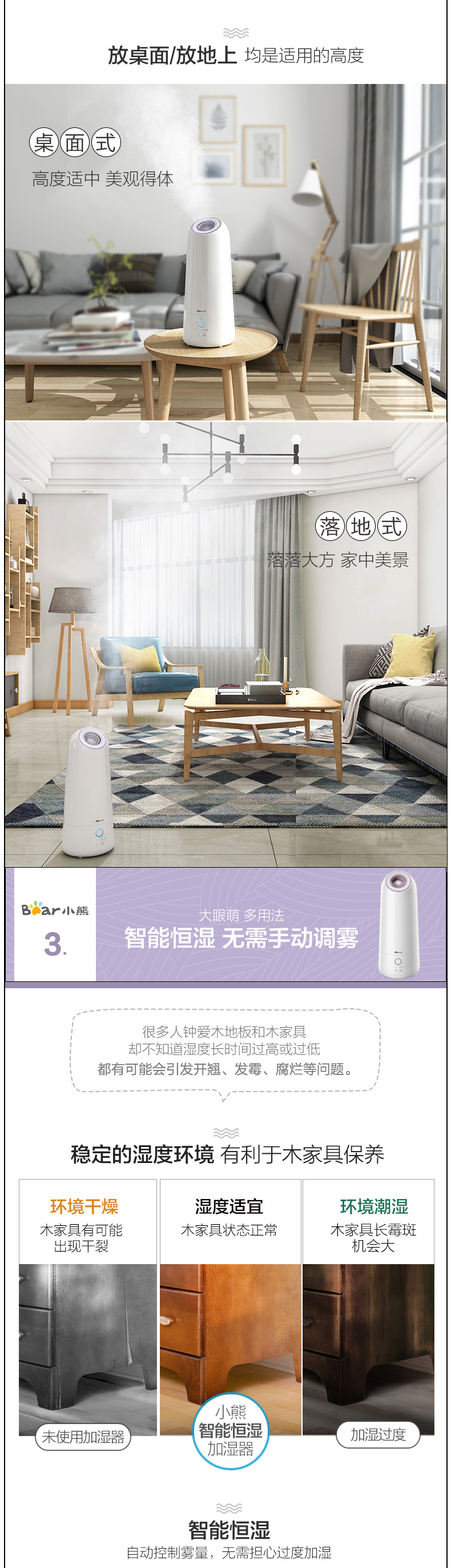 谢谢商家能耐心解答,这个小熊加湿器我在实体店看的两百多,我在淘宝看179,还是淘宝买了划算,我看了好几家问了都没有回复我,也着急用,家里开了暖气太干燥,孩子一直生病流鼻血,我问小熊艾萌专卖的时候,没抱希望,但是客服一直耐心解答,挺感动的,从佛山到河南是有距离的,我也一直看物流显示,挺快,回来第一时间用上,挺好,有点声音是可以接受的,出雾大,中午拍照片看不清楚雾大小,很喜欢,看上这款加湿器就是出雾大,外形简单大方,盛水容器大,不用操心总加水了,谢谢老板谢谢我们韵达的快递师傅,真是等小熊艾萌的加湿器也值了