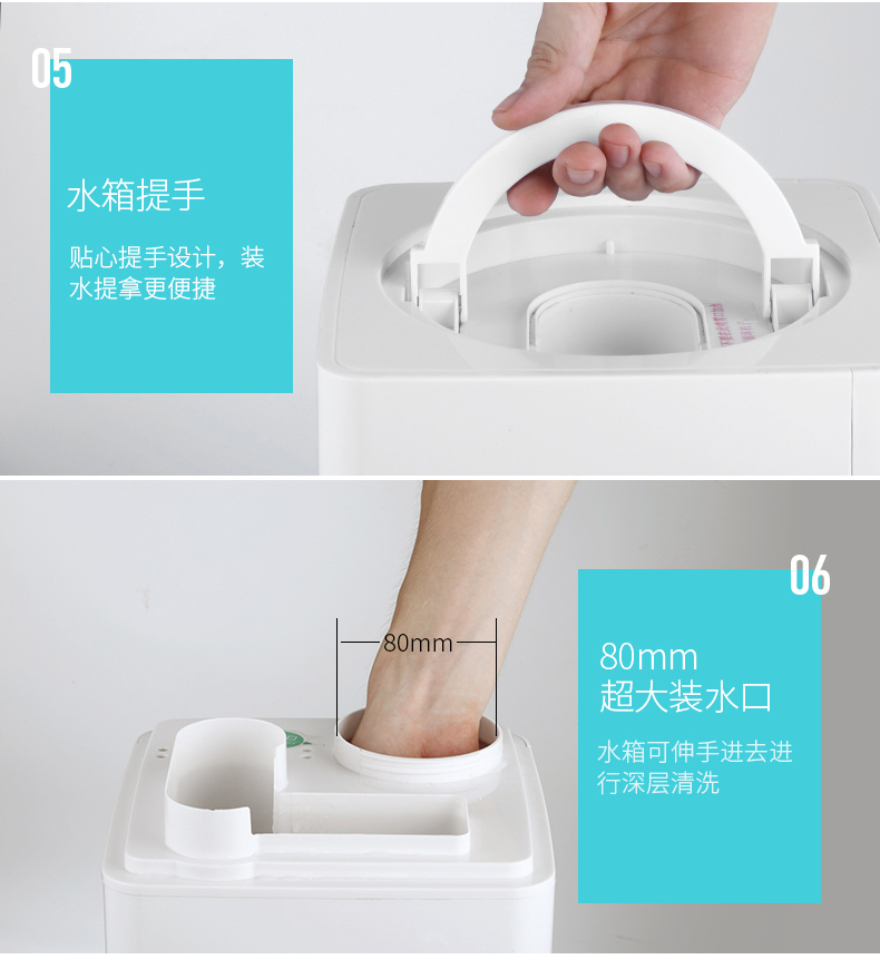 容量很大,不用一直灌水,雾量很足,可以随意调节,这样就不怕屋里温度太高太干了