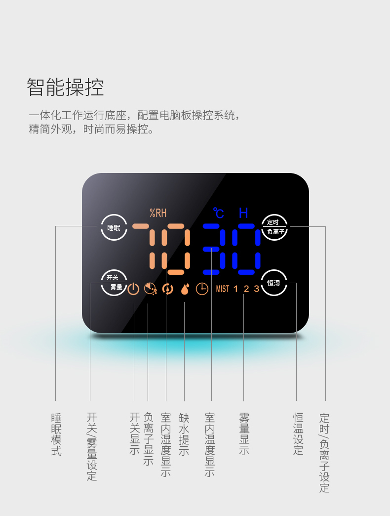 智能机功能人行化,可满足不多种需求,做工不错,出雾量还可以,家庭用应该是满好的,不知我用的场所效果达得到要求不,总的还满意,全5星好评。