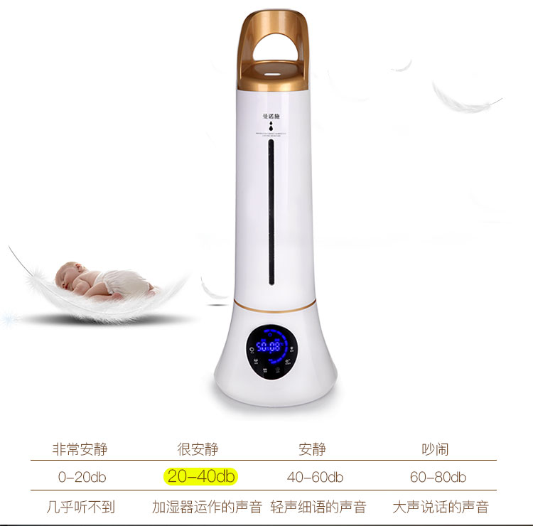 客服好,物流快!宝贝除了偶尔的滴水声没有任何声音,出雾也细!!!冬天开空调再也不怕干了,好评
