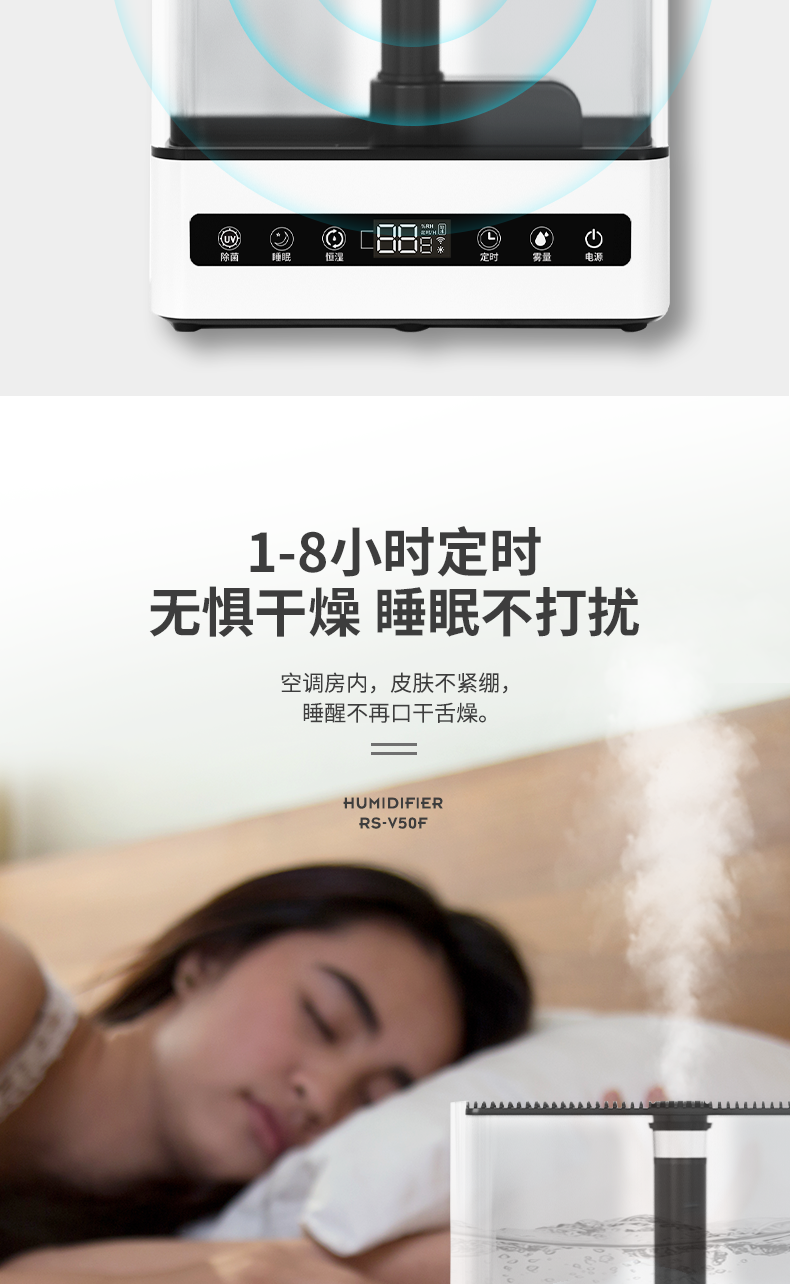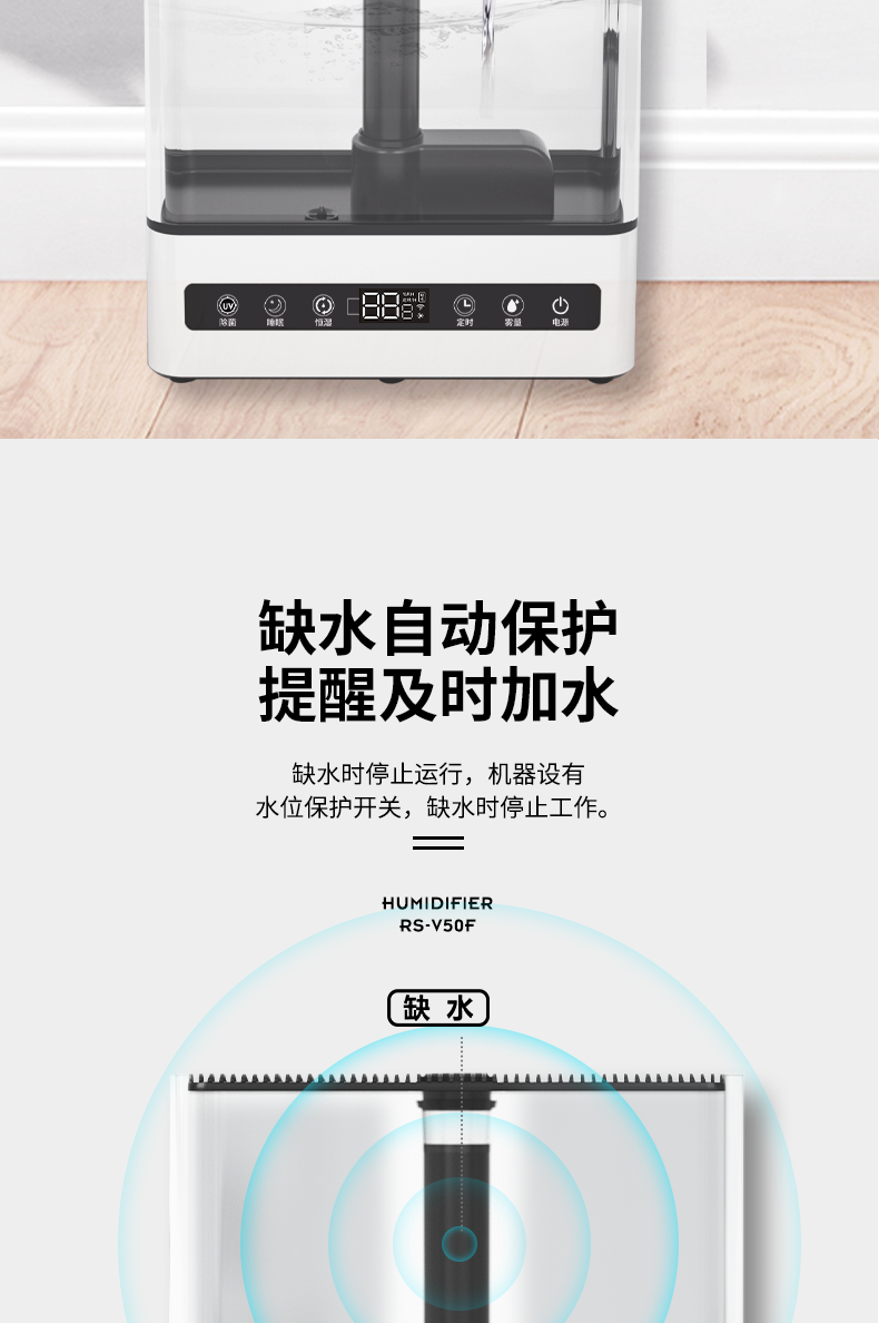 加湿效果:加湿效果非常满意,不会喷水珠出来哪里都湿湿的,喷出来雾细腻,大小可以调,满足各人需求, 水箱容量:水箱大容量,到天亮完全没问题,我昨晚睡前放水一箱满满用到现在,没水有自己会自动停用,非常满意噢 噪音控制:基本没声音,家里有宝宝非常合适的,夏天空调就要来了,放个加湿器完美,非常满意满意,快递也快,客服态度满意,满星噢! 外观材质:外观高颜值,材质非常满意,希望能用长久,我非常喜欢,希望店家越来越好,好评!
