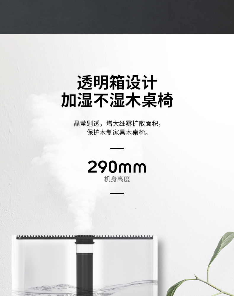 大牌子就是不一样呀!首先外表光滑无毛刺,看着就感觉质量很好,水箱容量大,注满一次水可以用几天,声音很小,晚上不会影响睡眠,出水量大,开机不到两分钟就出水啦!我们这边是南方,天气早就开始热了,这几天刚好用上,没用之前每晚开了空调第二天起床总感觉嗓子痒痒,皮肤干干的,用了加湿器之后再也没有这种现象啦!好评好评!