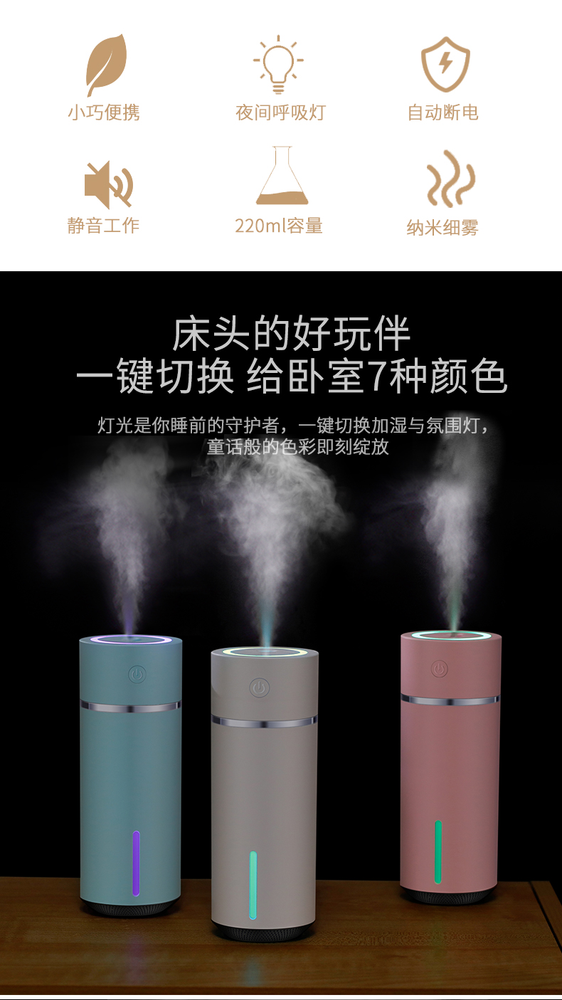 这款加湿器小巧精致可爱,喷雾量也是很大十分细腻,喷雾喷在脸上超级舒服,没有湿答答的感觉,这么小小的一个也可以随身携带,这个就可以随时用到它加湿皮肤或者干燥的空气,放在书桌上或者床头刚刚好,加湿器在加湿过程中完全不会影响学习或者睡眠,非常赞,质地也很好,这款的加湿器超级不错,颜色也好看,而且使用方便,十分满意。