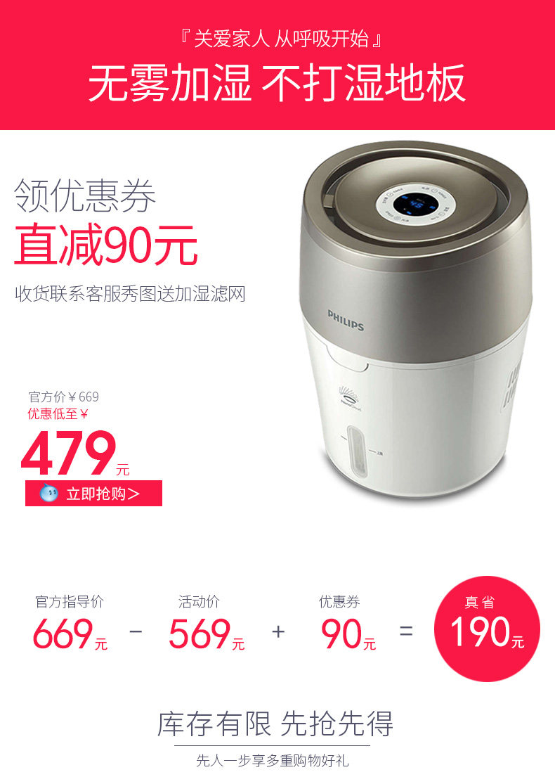 (82)[伟盛电器商城加湿器]空气加湿器家用静音卧室除螨杀菌大雾量月销量99件仅售288元