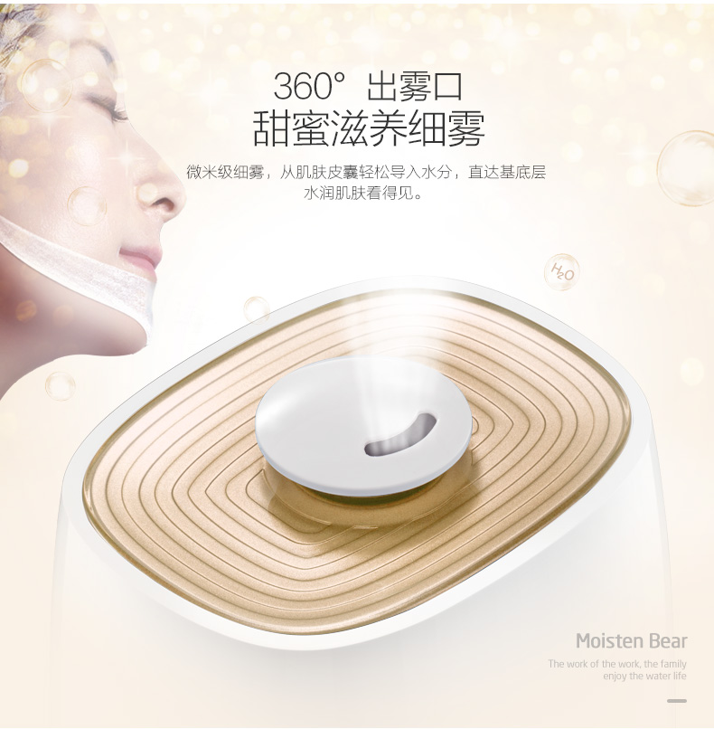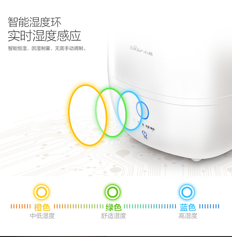 雾气不小,一开就有,就是辐射面积小,用了几天了,没什么感觉,小孩说鼻子还是干。声音很小,加水不方便,从底座上加,而且漏水