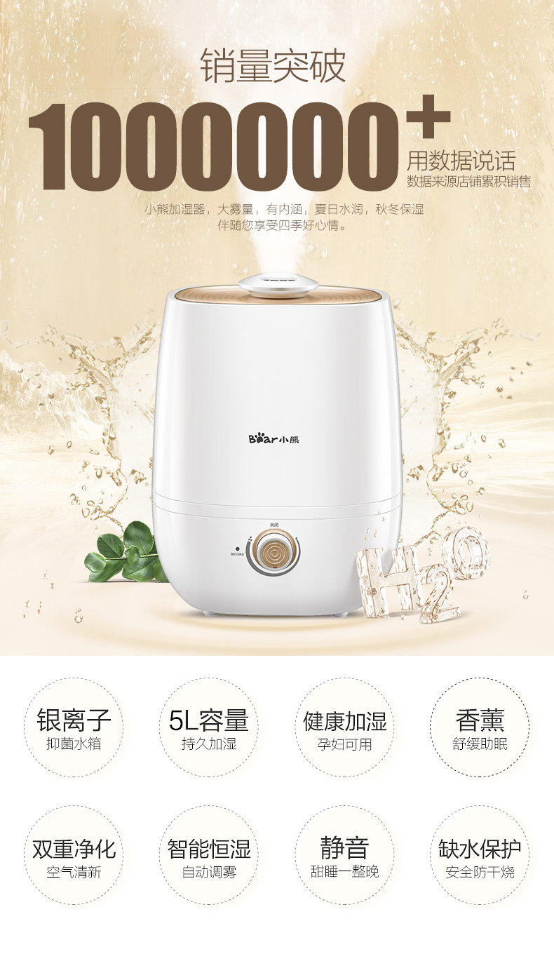 (82)[伟盛电器商城加湿器]空气加湿器家用静音卧室除螨杀菌大雾量月销量99件仅售288元