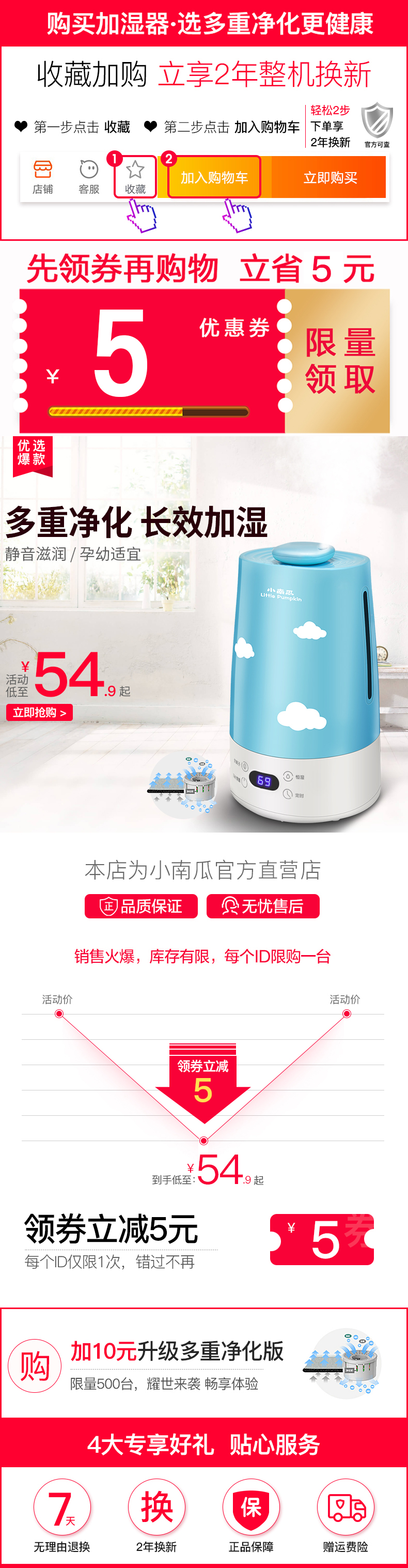 (75)[松京旗舰店加湿器]松京HU61智能落地式加月销量995件仅售139.9元