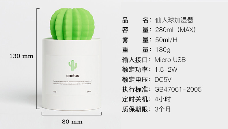 (64)[gotein旗舰店USB加湿器]充电款usb无线加湿器仙人掌便携式喷月销量99件仅售58元