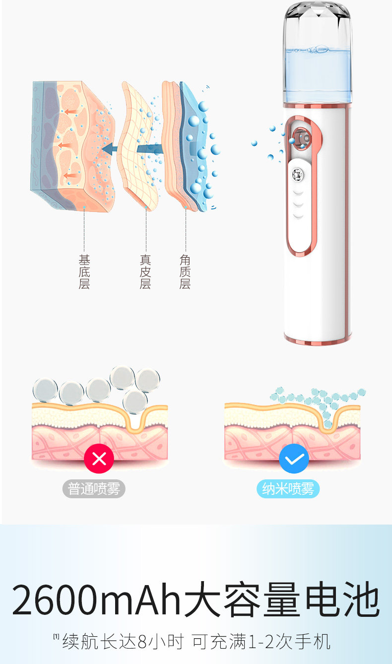 补水仪质量不错而且特别舒服喷雾的感觉,性价比挺高的,放包里合适,重点续航能力也挺可以的,