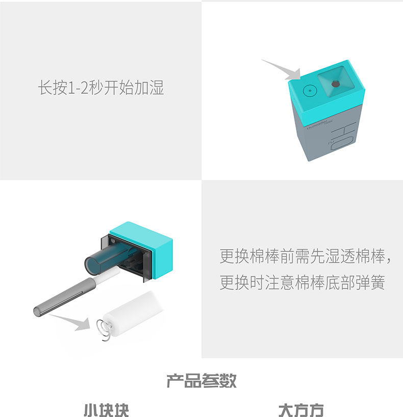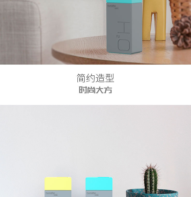 用了一周多才来评价,颜色小清新,造型不占用空间,出雾口不小,放在出雾口还觉得有点凉凉的,开关键灵敏,有USB插电脑上放办公桌上很方便,同事看到还问我要了链接哈哈