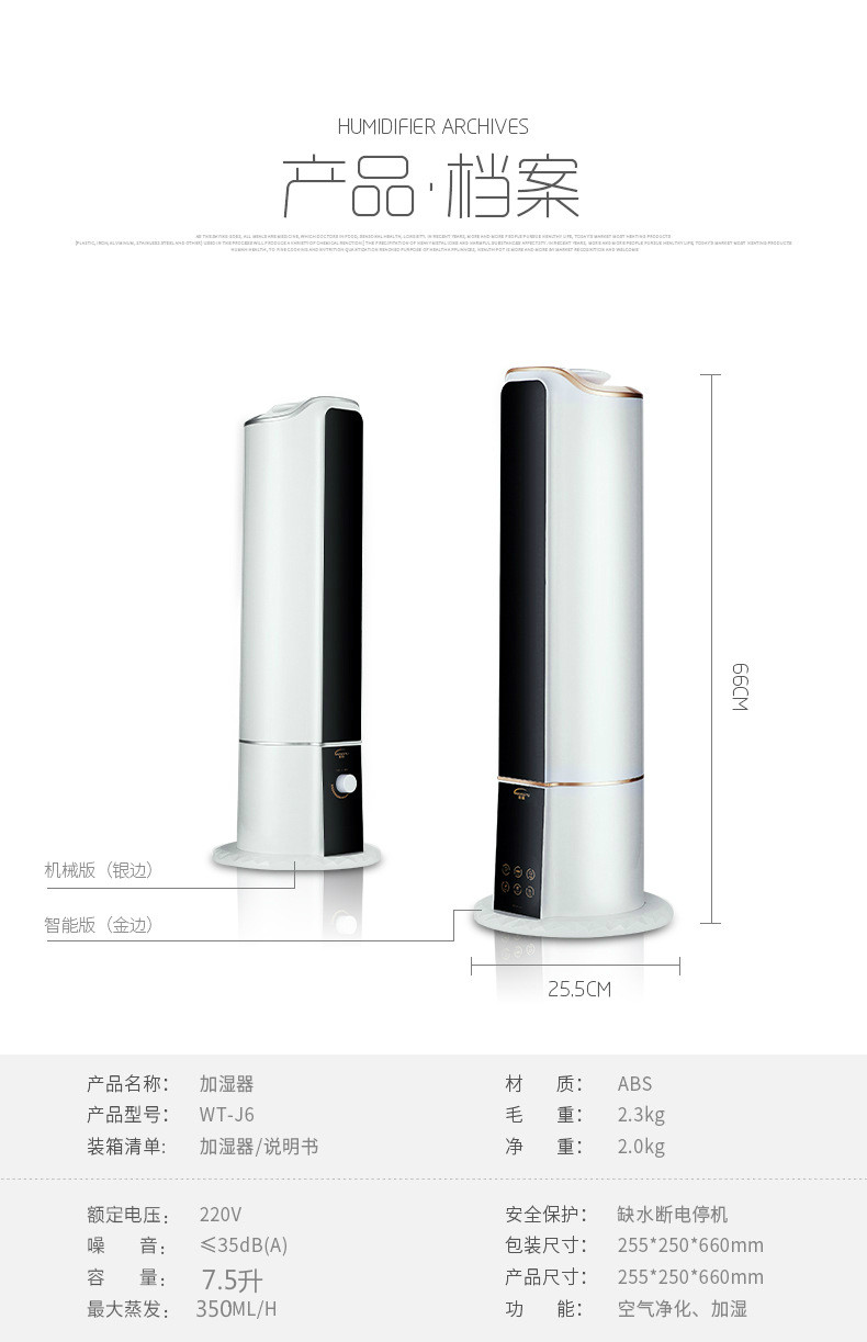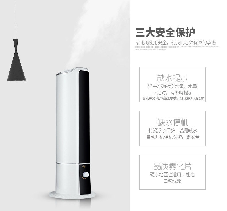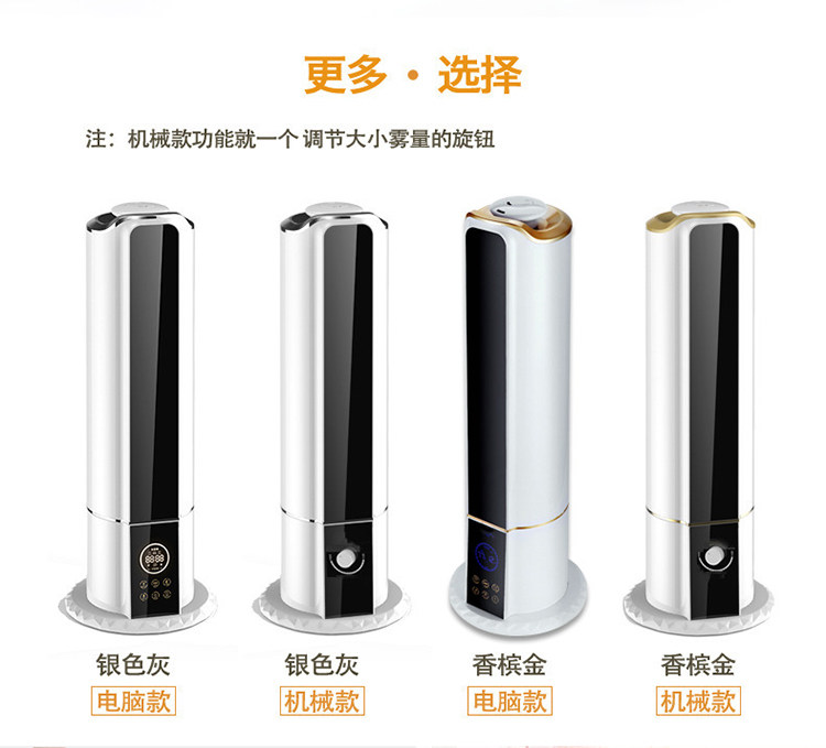 机械版: 手动按扭调雾量大小,有自动缺水断电功能,为一般加湿器!没有定时,遥控,恒湿,液晶屏等!