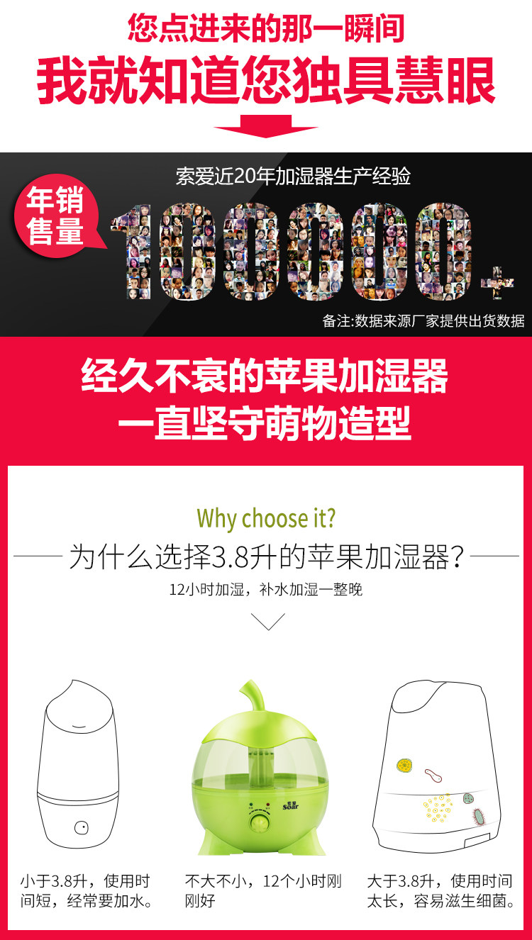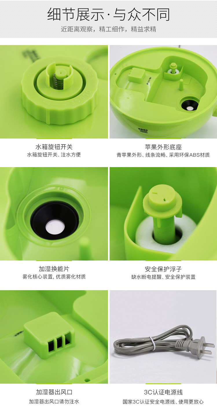 • 颜色分类:苹果加湿器 苹果加湿器+一瓶10ml精油 苹果加湿器+一瓶10ml精油+湿度计
