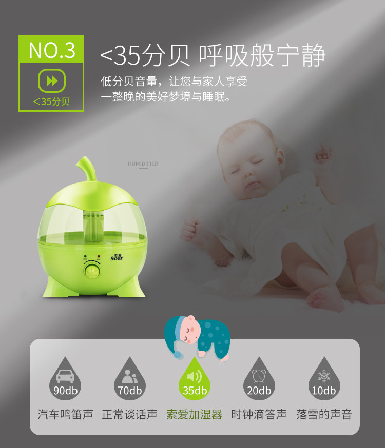 [索爱电器心生企业店加湿器]索爱加湿器家用静音大容量办公室卧室迷月销量56件仅售69.9元