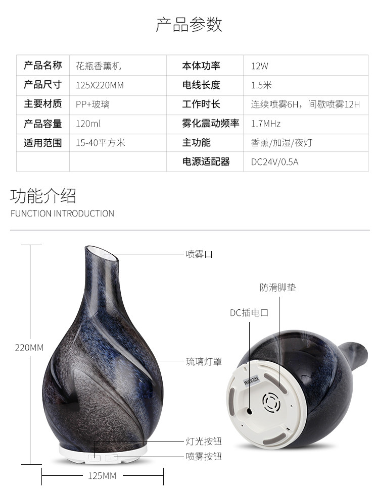 琉璃香薰机加湿器小型家用超声波喷雾香薰灯卧室插电香薰炉精油灯