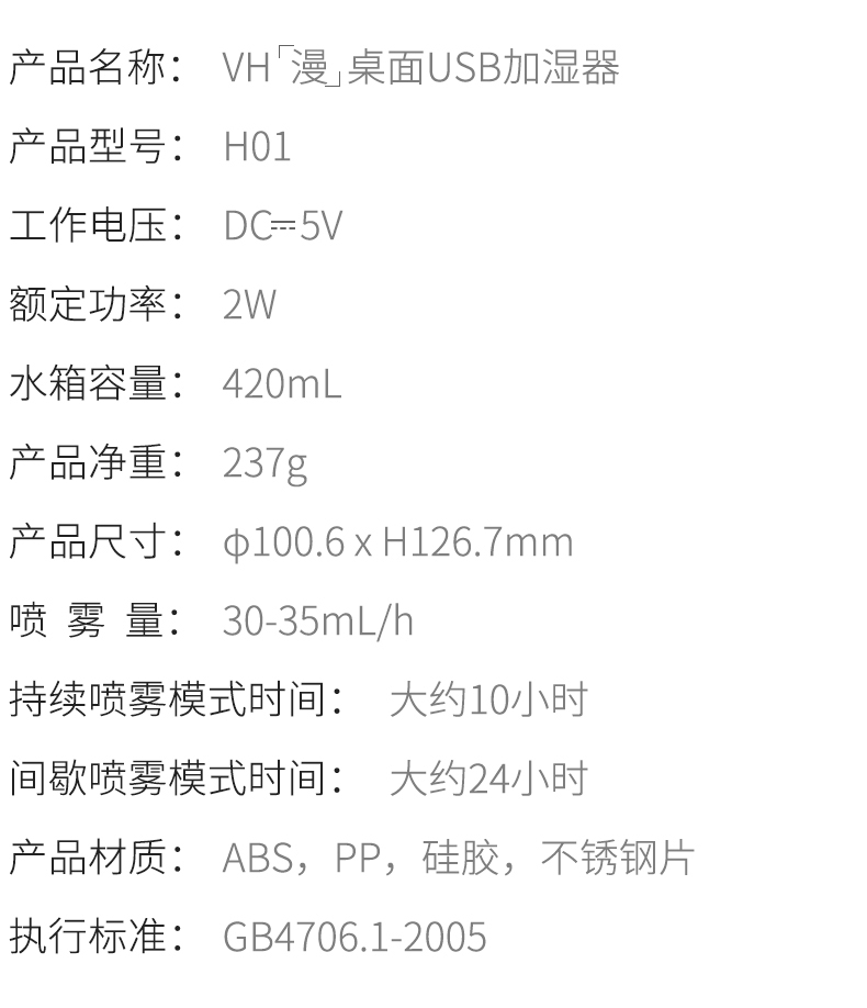 加湿器蛮可爱的,加一次水可以用大半天。体积尺寸正好,喷出的水雾很细,适合放在桌上用,很精致,灰色很高级