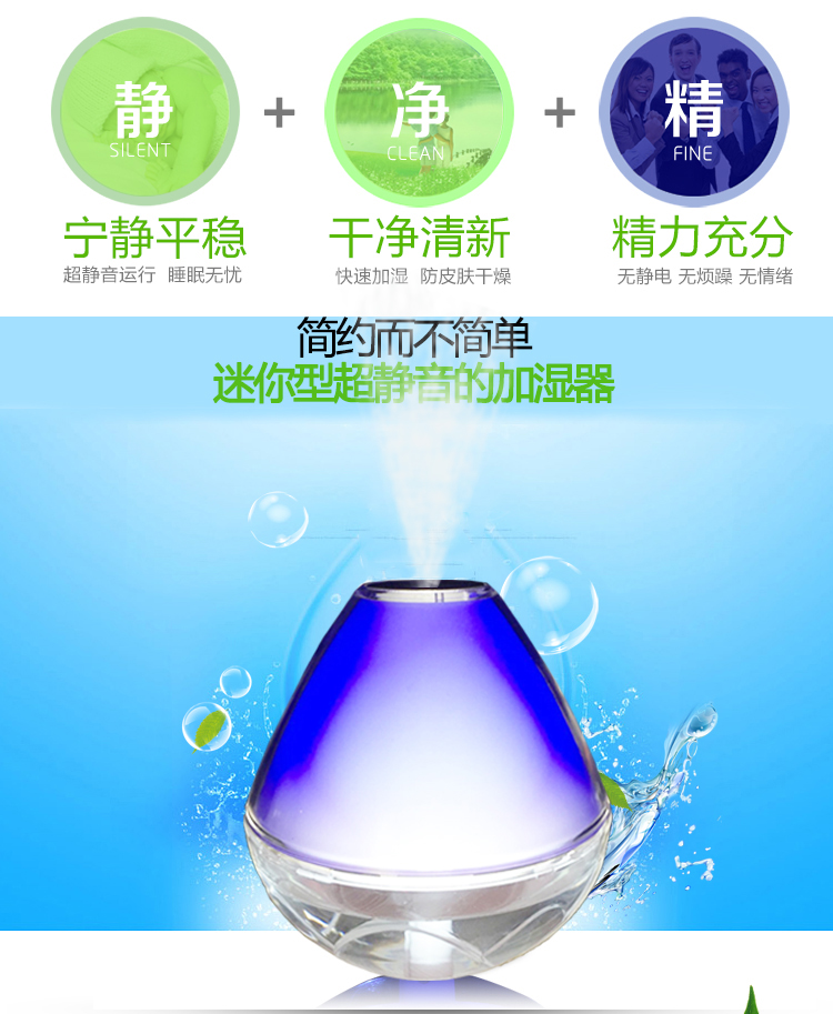 usb加湿器家用静音 卧室桌面办公室小型喷雾空气净化器学生创意