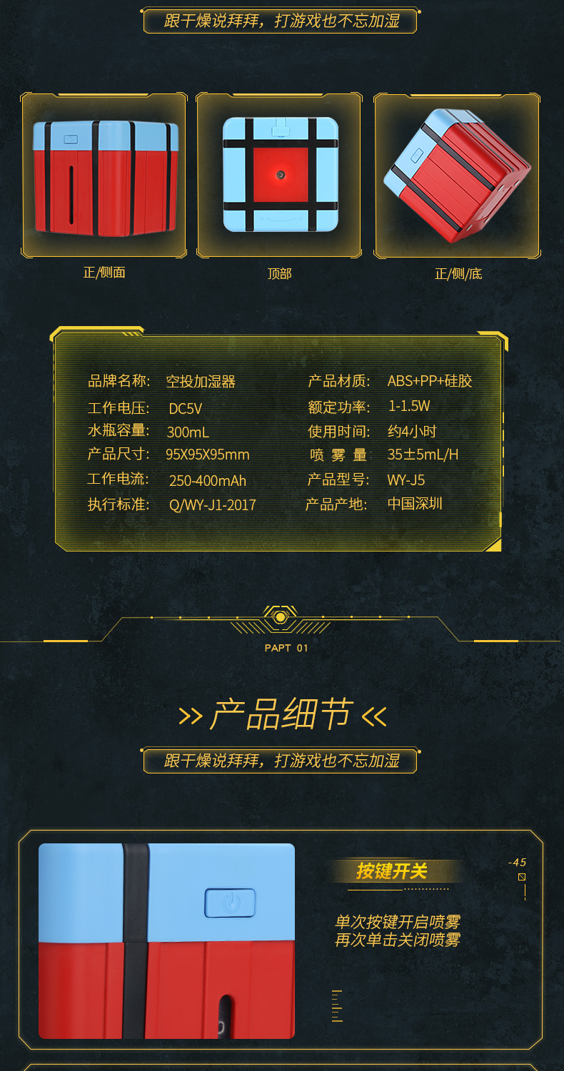 送给男朋友的,说买加湿器,他自己选的款式,男朋友很满意,充电的地方有一点小瑕疵,不过还好,整体挺不错的,物流也挺快